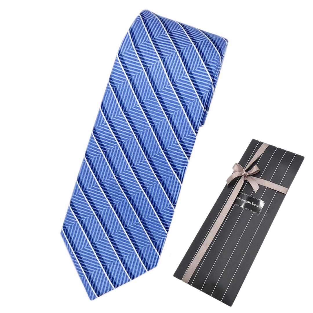 【未使用】ゼニア ブランド ネクタイ エルメネジルド・ゼニア Ermenegildo Zegna ストライプ シェブロン 高級 シルク100% ブルー 青 30073
