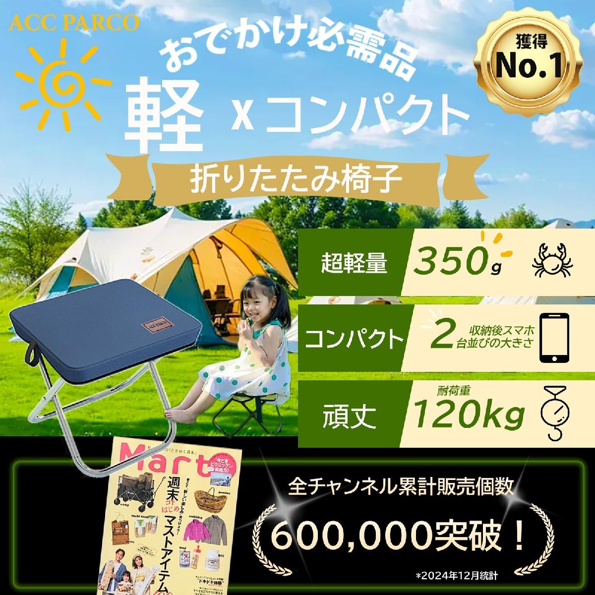 【在庫限りです】【おすすめ】耐荷重120kgミニアウトドアチェア『超軽量350g』×『コンパクト』持ち運び便利5秒で開閉折りたたみ椅子