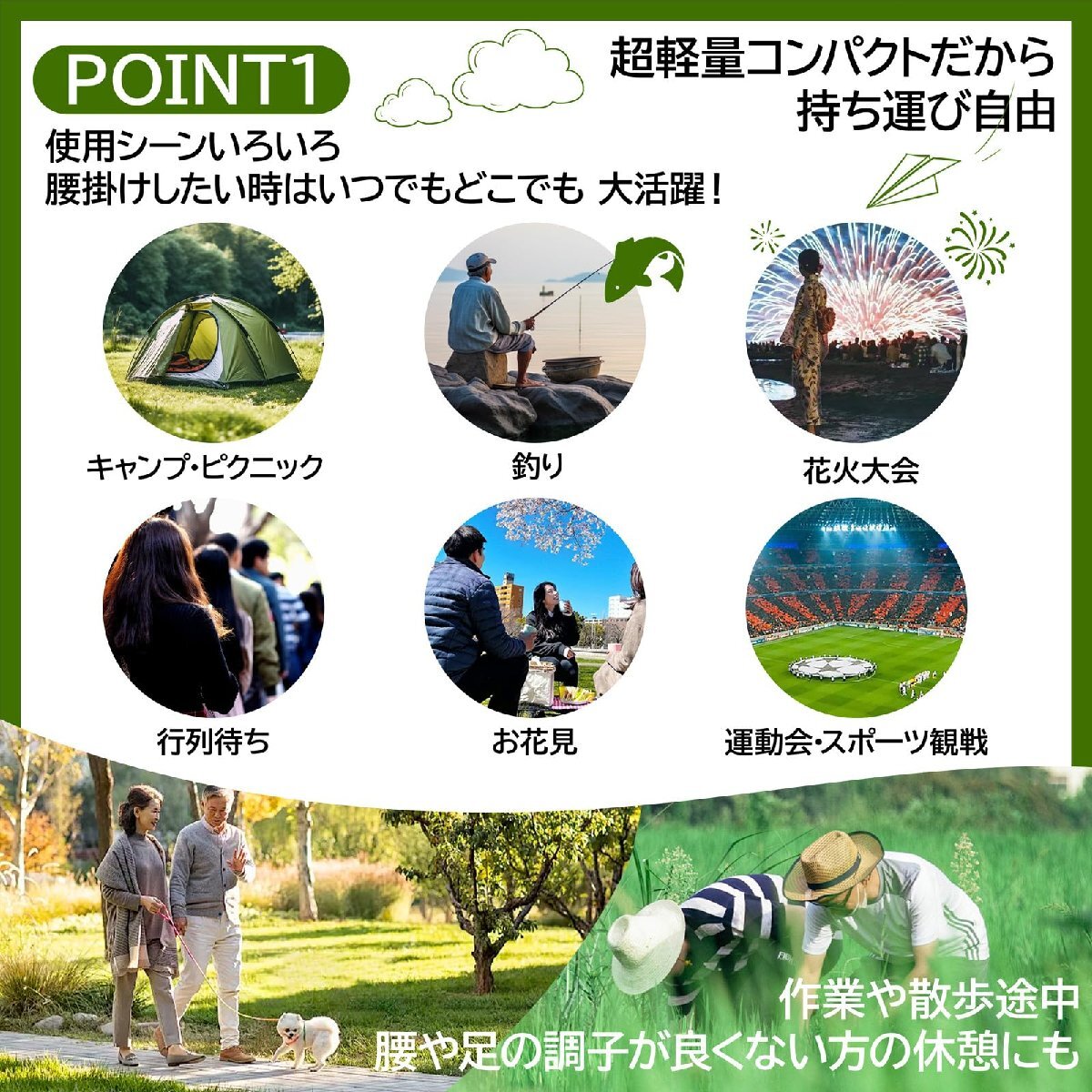 【どこへでも楽に持ち歩きが可能です】花見・GW・キャンプ・BBQ・釣り・花火大会・ピクニック・子供の試合観戦などアウトドア活動だけでなく、待ち時間、長時間の乗車、通勤等日常生活にも不可欠な便利なアイテムです