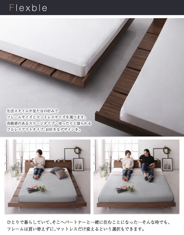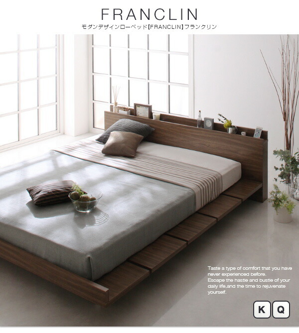 組立設置付き モダンデザインローベッド FRANCLIN フランクリン 国産カバーポケットコイルマットレス付き ナローステージ ダブル フレーム幅160【フレームカラー:ウォルナットブラウン】です。