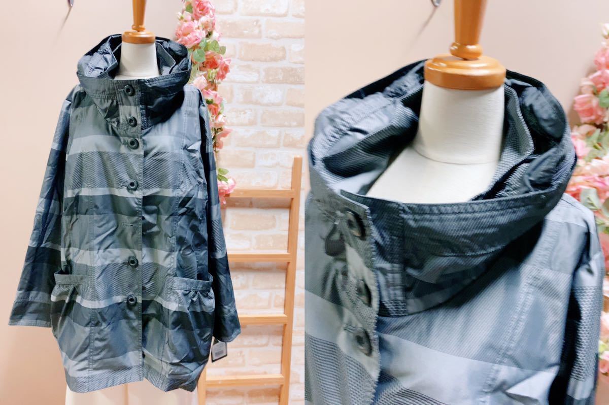 FG1596*5L 大きいサイズ 先染グラデーションボーダーコート