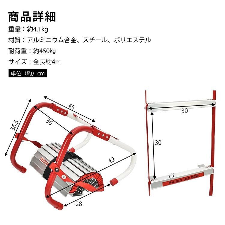 送料無料 避難はしご 防災はしご つり下げはしご 梯子 折りたたみはしご 救援はしご 災害用 約4m 2階用 2階建て 耐荷重450kg bs003-400