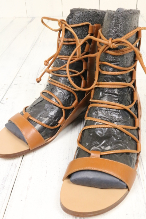 上質なレザーを使用したグラディエータータイプのレースアップサンダルです。
