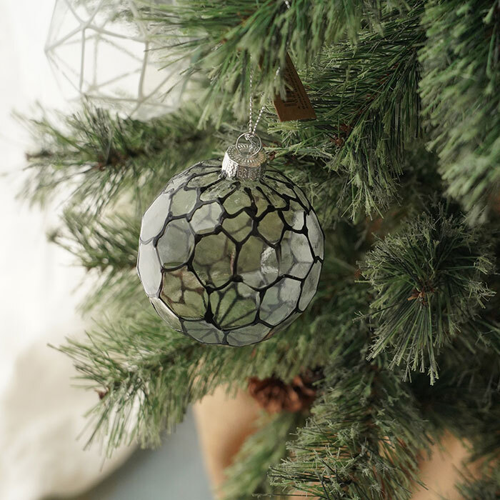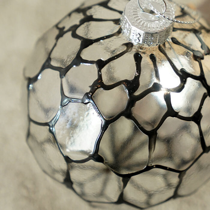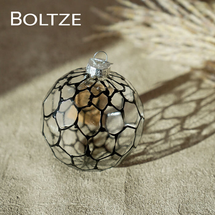 クリスマス ツリー 飾り オーナメント BOLTZE ガラスボール メリン 幾何学模様 1個入 [3] 8cm ブラック ハニカム柄[190008-3]
