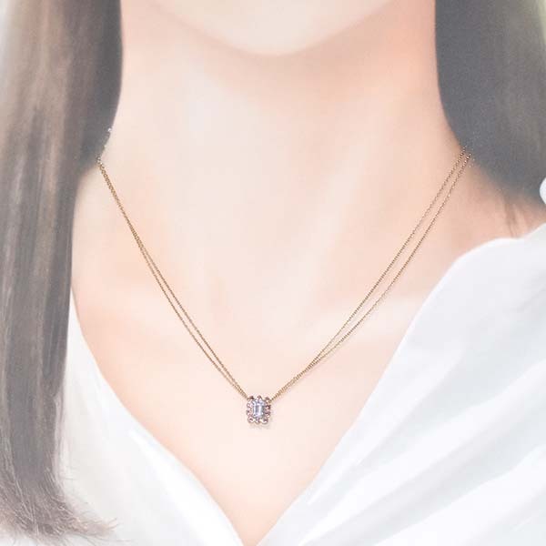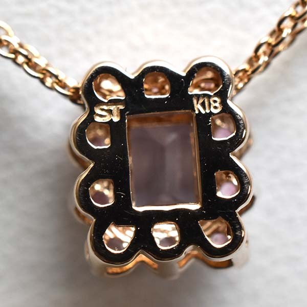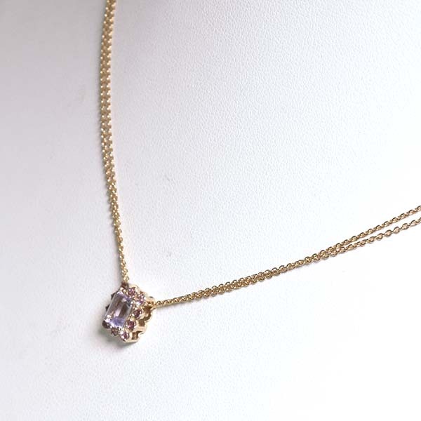 アメシストの周りにピンクトルマリンをセットしたサマンサティアラの18金ピンクゴールド製ペンダントネックレス。