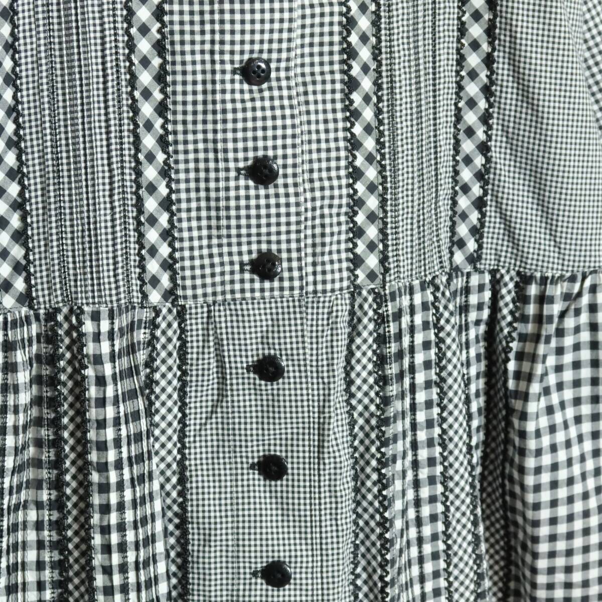 | 商品説明 | 【実寸約】肩幅43袖丈42バスト102着丈106(cm) 【サイズ表記】 F 【素材】綿100% 【状態】使用感少々で傷や汚れが少々あるお品物 後ろ身頃スカート部分に小さい黄シミがございますが、まだまだ大活躍の可愛い一着です。 【デザイン】黒系 大小さまざまなチェックのパッチワークワンピースです。 ボタン前開きでコート風にも♪ ボリュームスカートと合わせても可愛い、季節をまたいでコーデを楽しめる一着です。 ポケットあり |