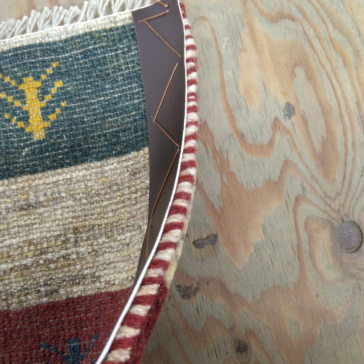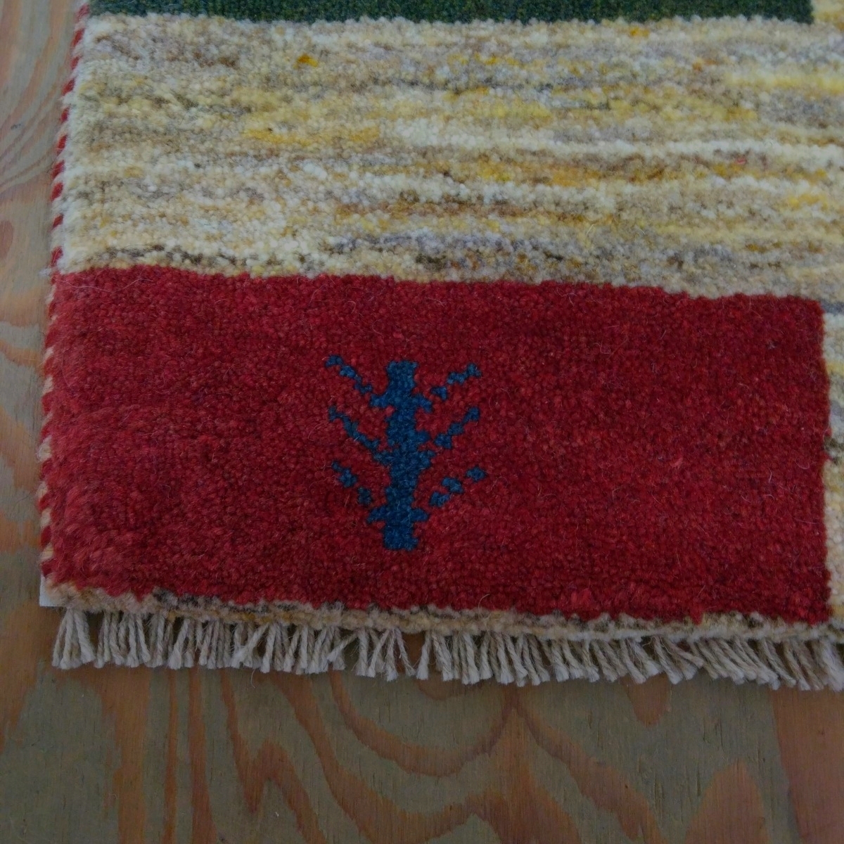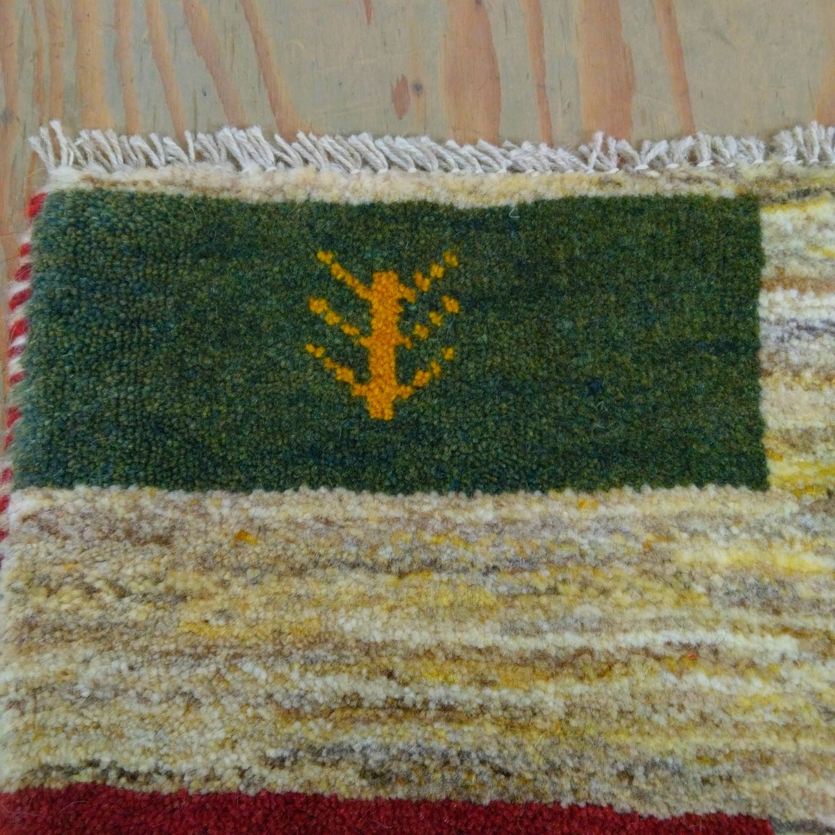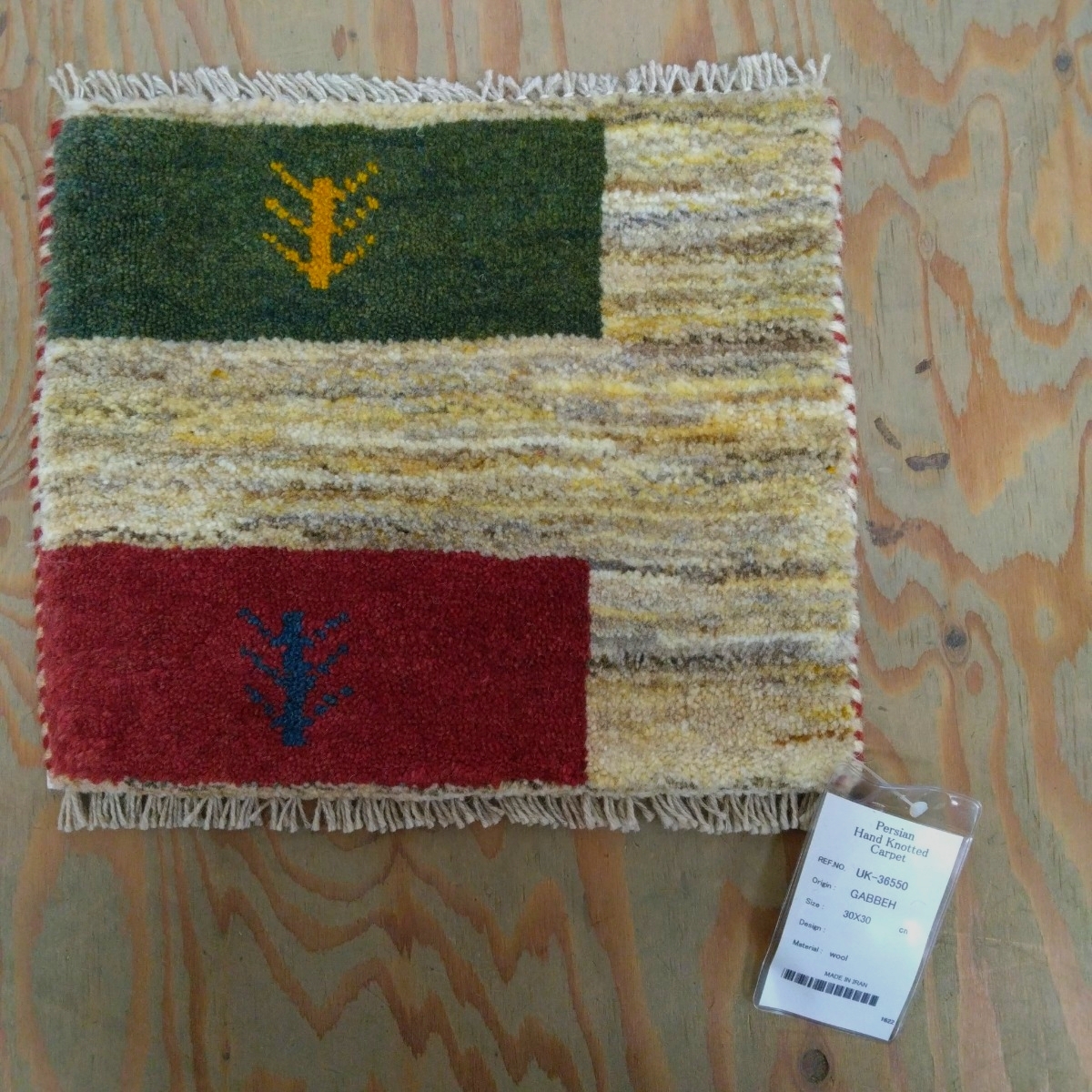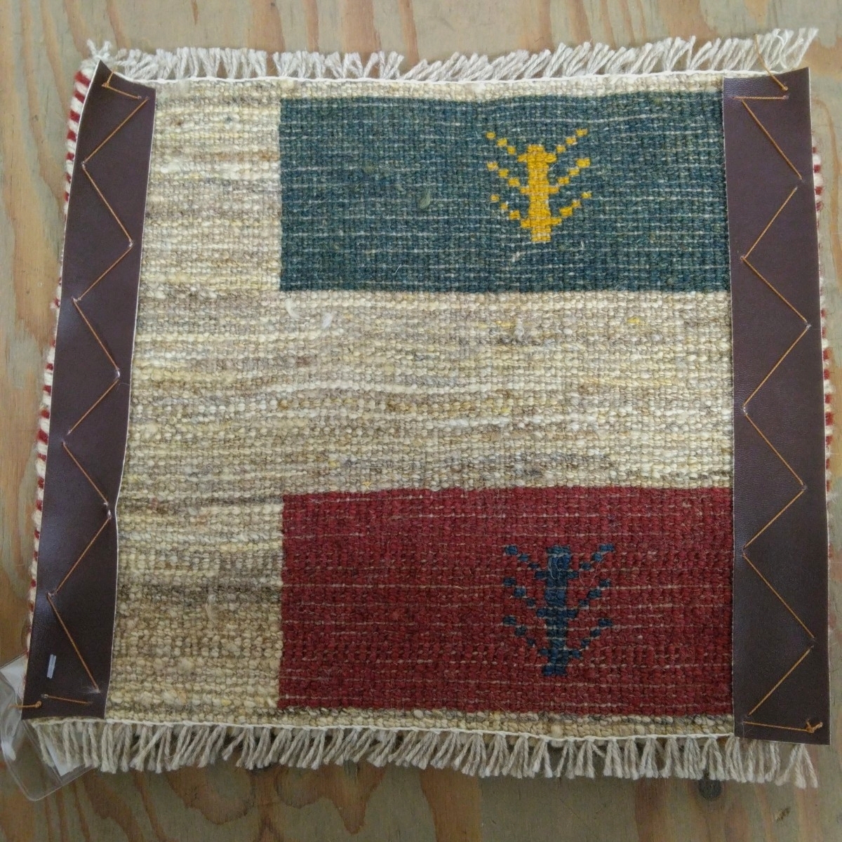 ☆未使用 ギャッベ カーペット ASHAYER ラグ 30cm チェアマット 座布団 保管品 GABBEH アシャイェール イラン ウール UK-36550