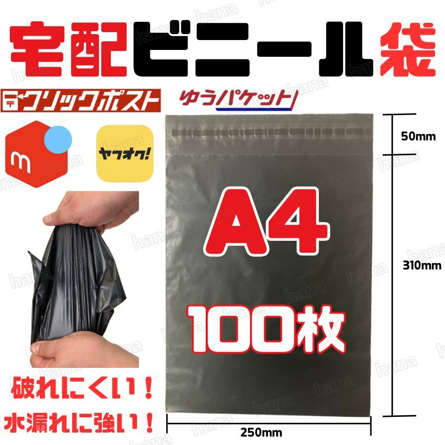 宅配ビニール袋 宅配袋 A4 100枚 1束 ポリ袋 強力テープ付 ネコポス ゆうパケット クリックポスト ラッピング 防水 梱包 包装 資材