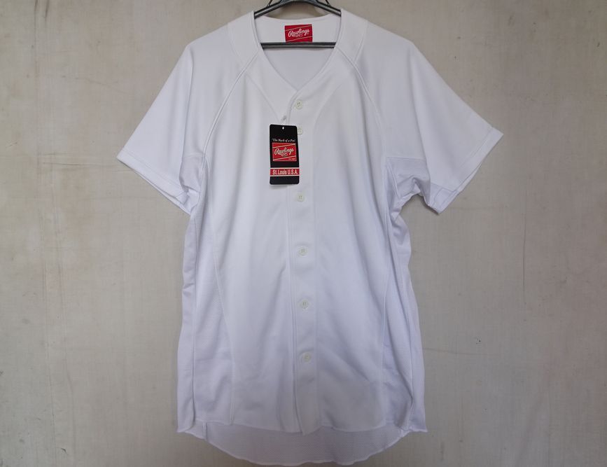Rawlings/ローリングス/半袖シャツ/ユニフォーム/野球/ベースボール/前ボタン/メッシュ素材切替/白/ホワイト/Oサイズ/タグ付(9/1R7)