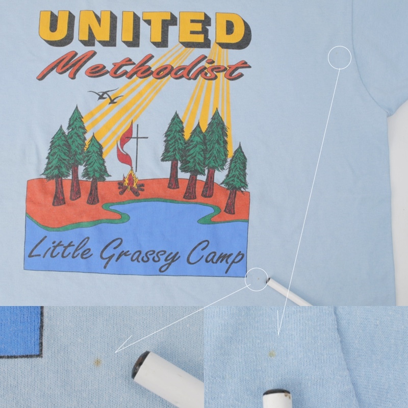 右首リブ横、左脇、プリント下部にサビのような点シミ