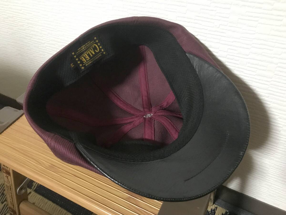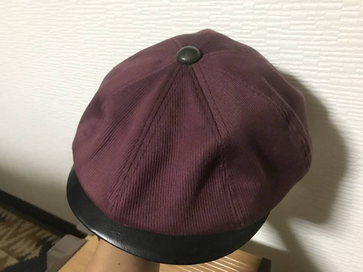 コットンとレザーのコンビ/エンジ+ブラック/サイズM/キレイ目な品です