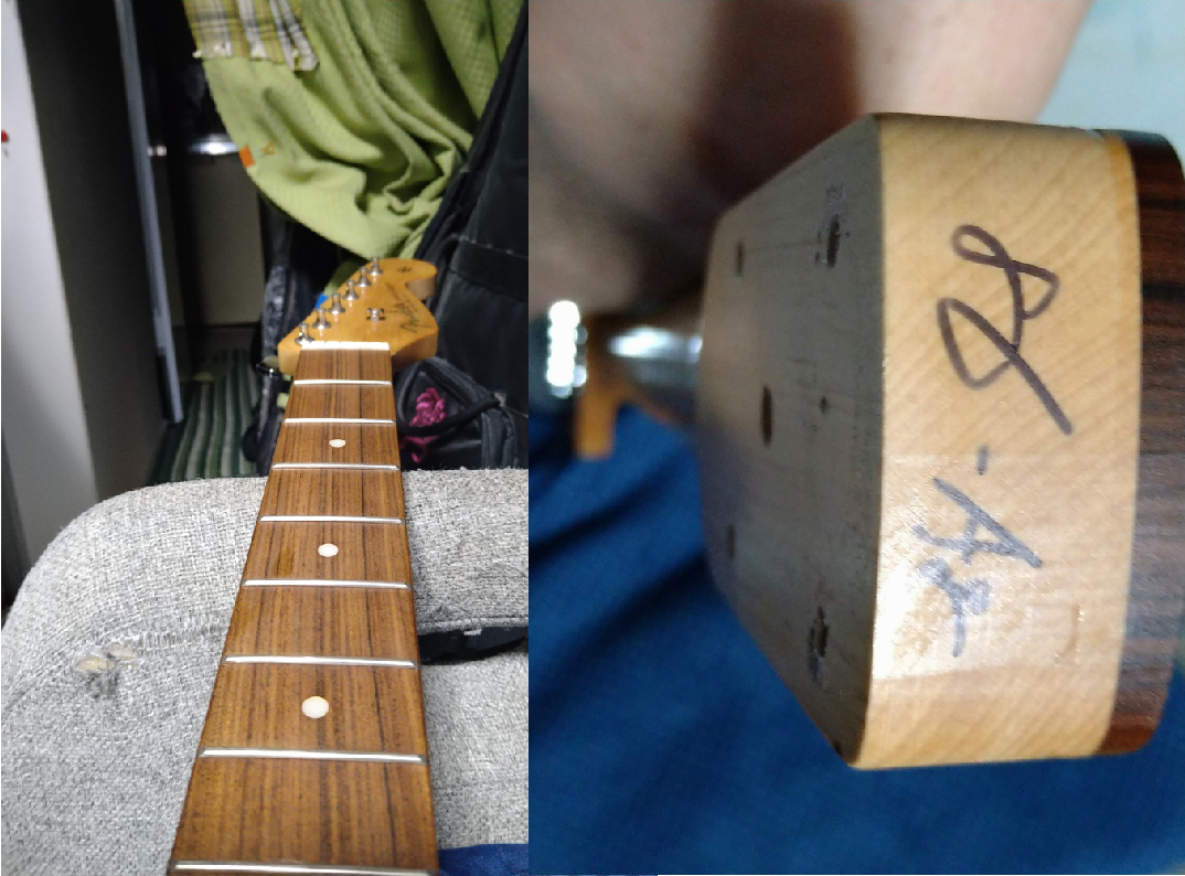 ヘッドにはF社の補修用デカールが貼ってありますが、F社のネックではありません。