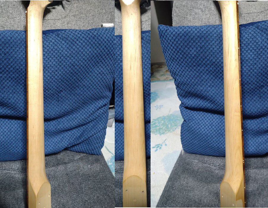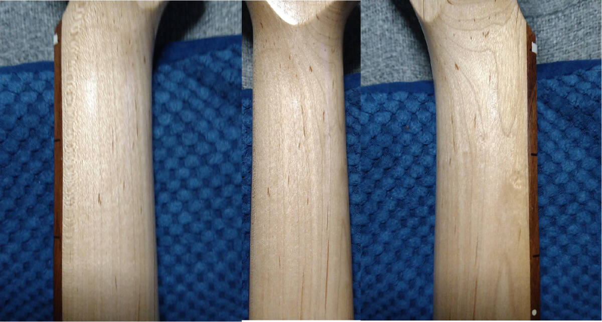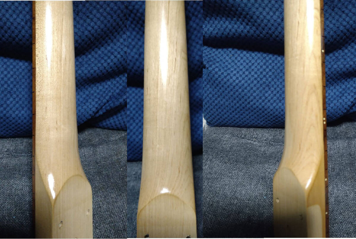 ネックもこれといった目立つ木目はなく、指板はキレイですが、色が薄いです。