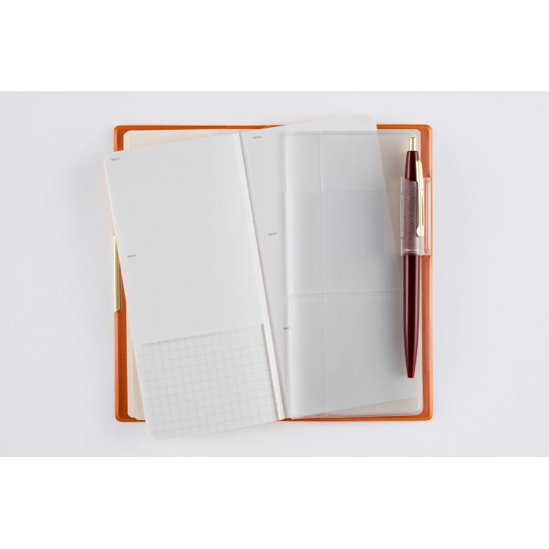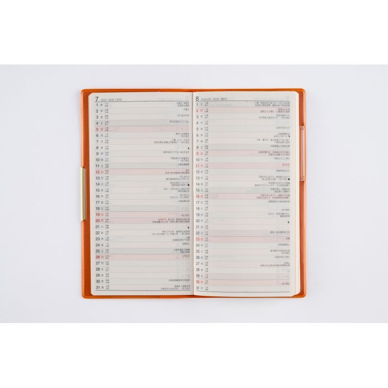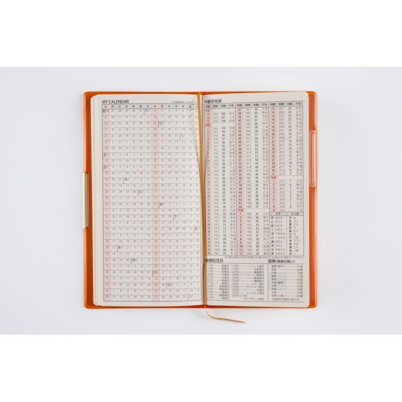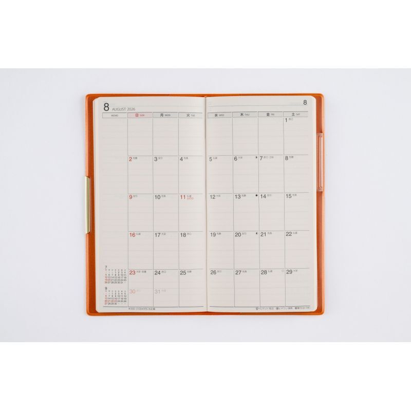 月間横ケイ式とブロック式の併用タイプ。年中行事やお祭り、九星、一粒万倍日などの情報が満載。取り外しができるクリア素材のフリーポケットは名刺やショップカード、ふせん、切手などのちょっとしたものを収納できます。