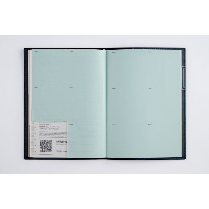 シックなカラーでステッチ入りのカバーは、毎年細部にまでこだわって製作しています。記入スペースと持ち運びやすさのバランスがいいB6サイズ。