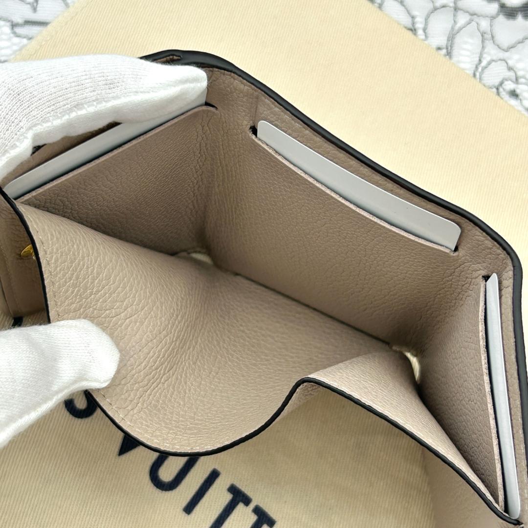 ルイヴィトンの中でも最も小ぶりなサイズのポルトフォイユ ロックミニ 折り財布です!落ち着いた色合いでどなたでも使いやすく、お札入れ・カードポケットもしっかり付いています