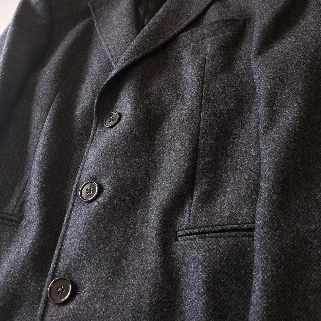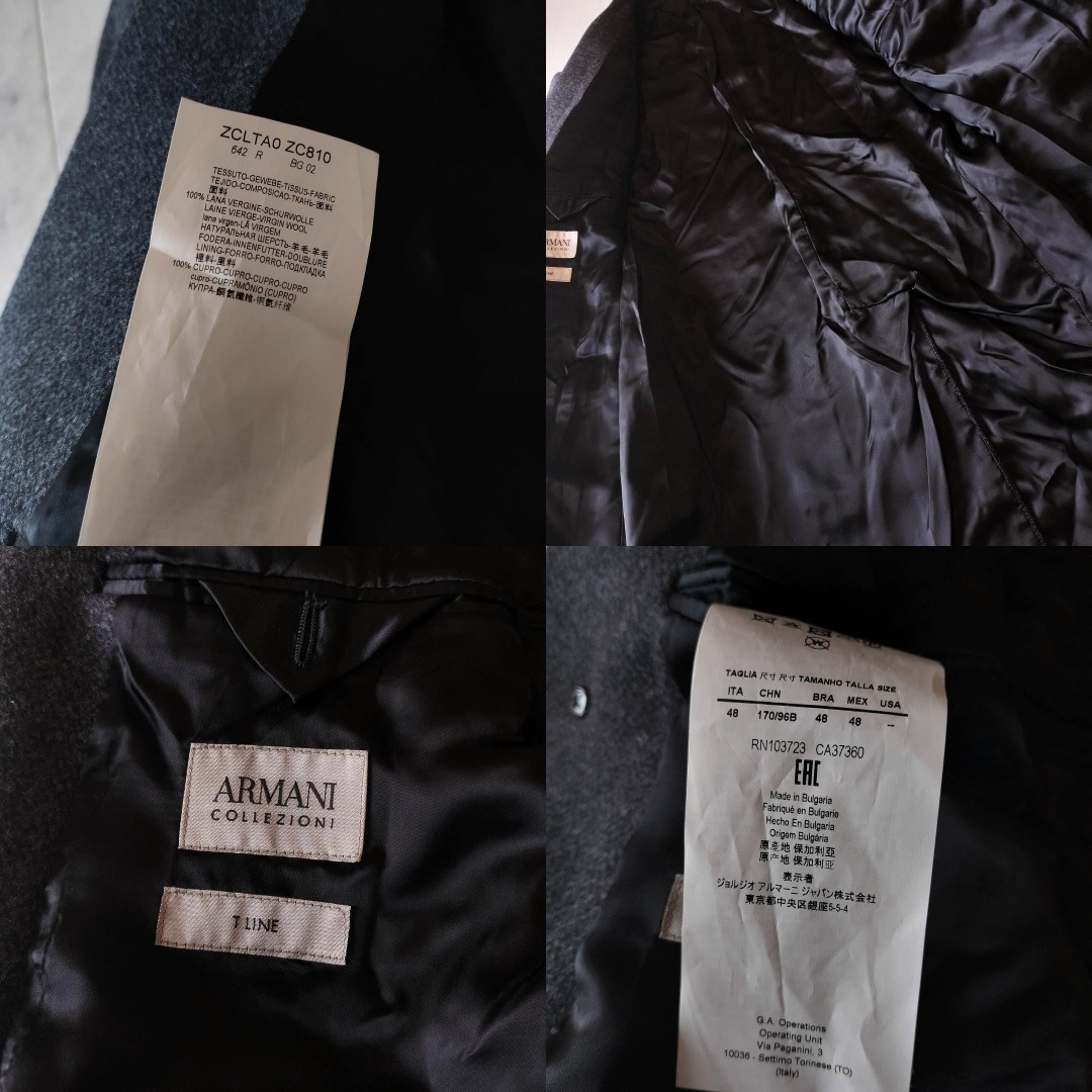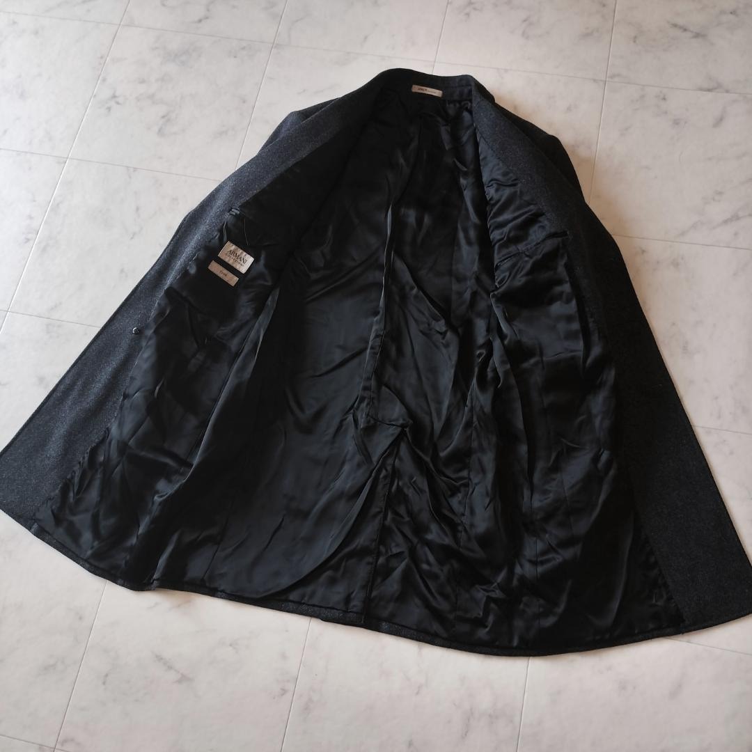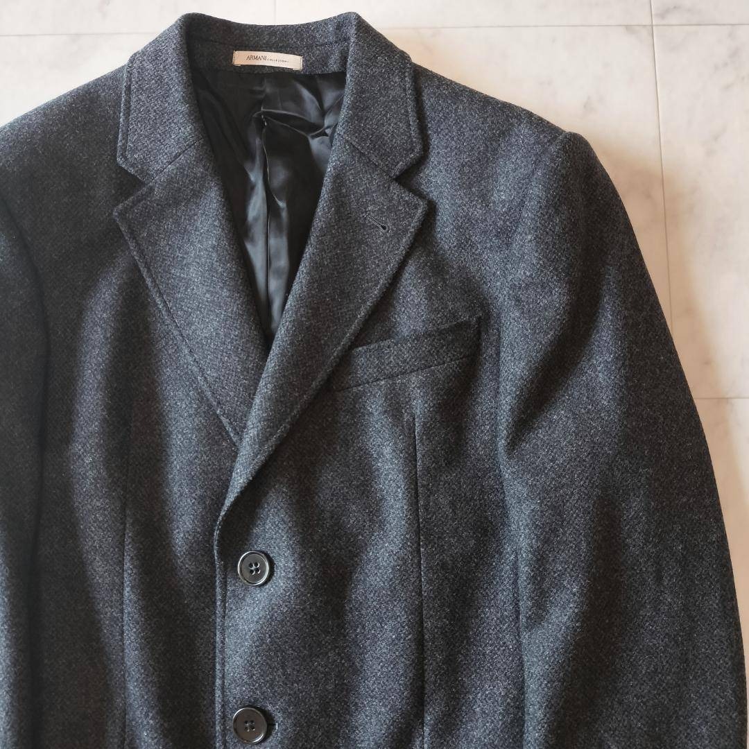ARMANI COLLEZIONI アルマーニコレッツォーニ バージンウール100% チェスターコート ツイード ビジネス チェスターフィールドコート オールドマネースタイル ロングコート グレー ウール GIORGIO ARMANI Virgin wool 100% chester coat tweed 「ジョルジオアルマーニジャパン 株式会社」の記載あり。