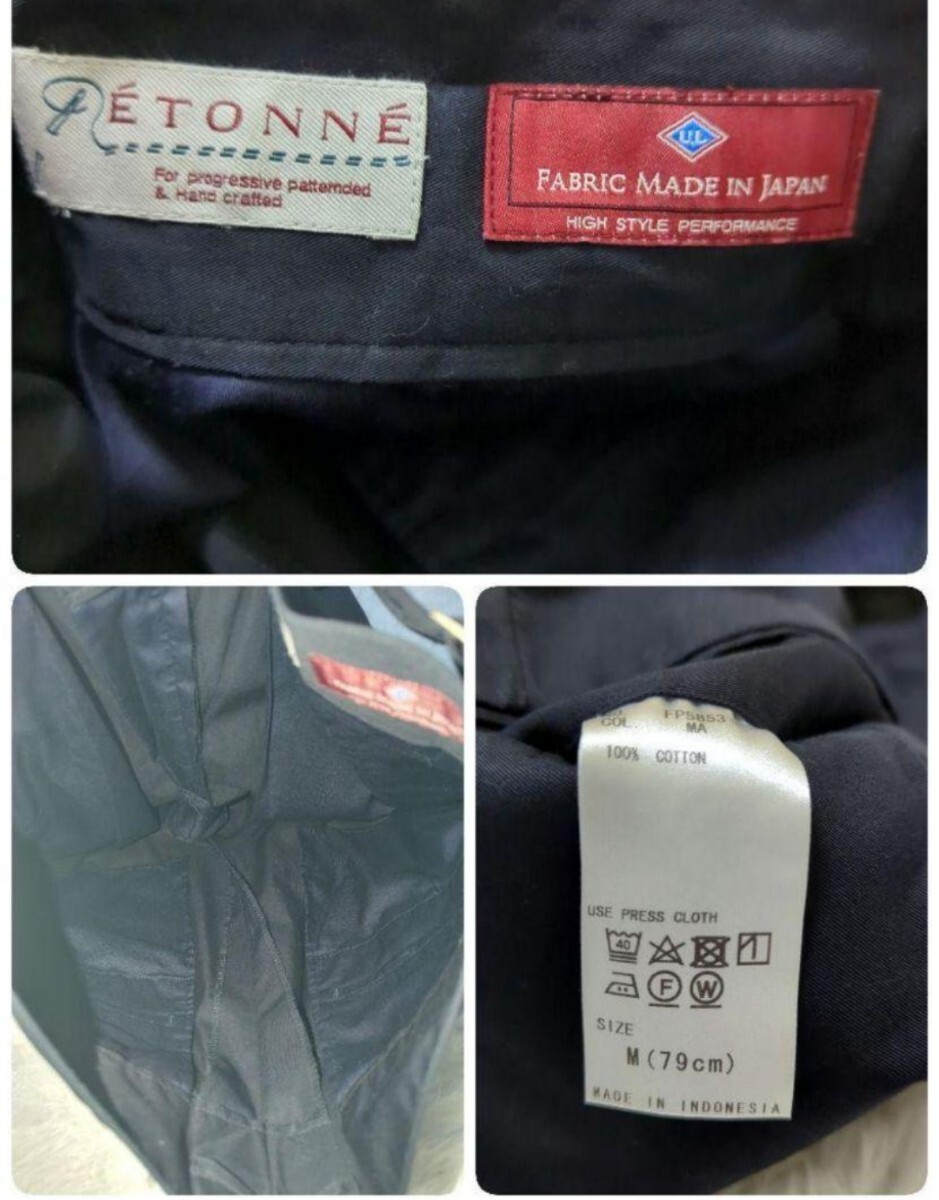 ETONNE コットン M 紺 スラックス サイドベルト グルカパンツ 2タック インプリーツ センタープリーツ クリース