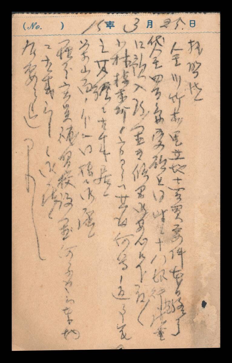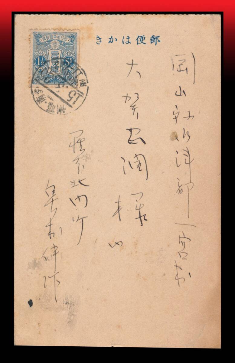 H47百円〜 朝鮮|田沢1銭5厘/私製葉書 櫛型印:全南・羅州/15.3.25/前11-后2 左下穴有り エンタイア