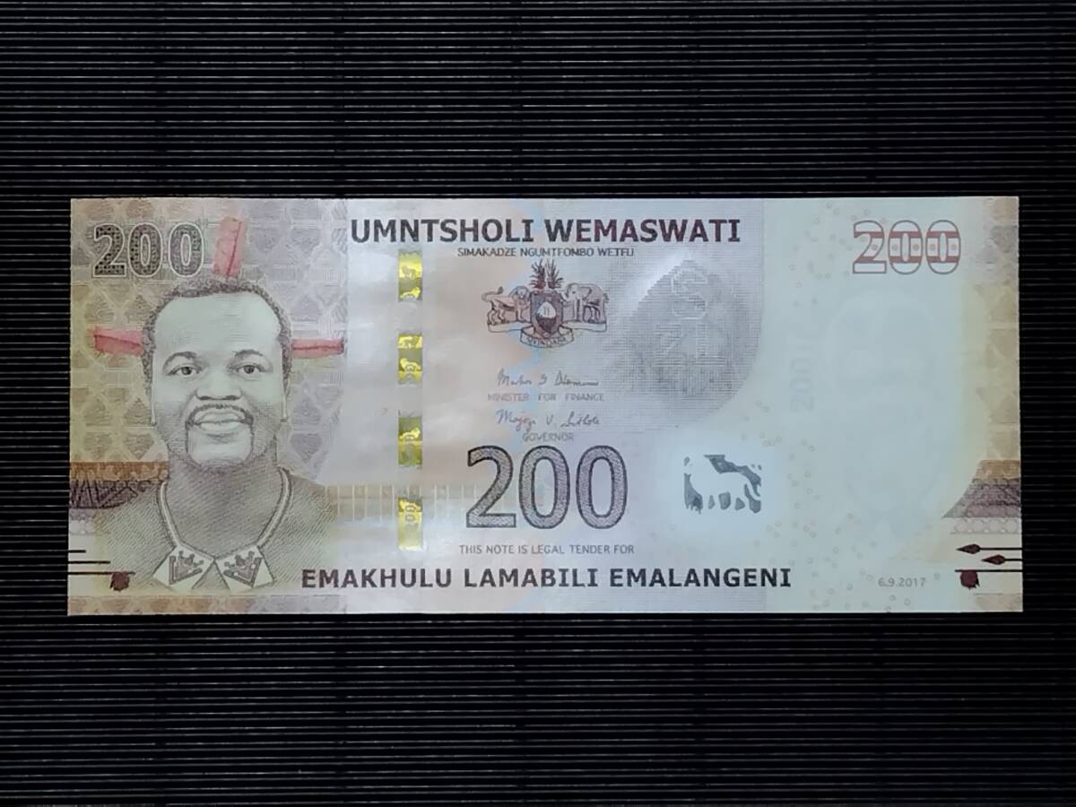 スワジランド 200 Emalangeni札   コレクション向けピン札  2017年9月6日  未使用~甘い未使用(汚れ?) 牛  p-43 #AA4528344