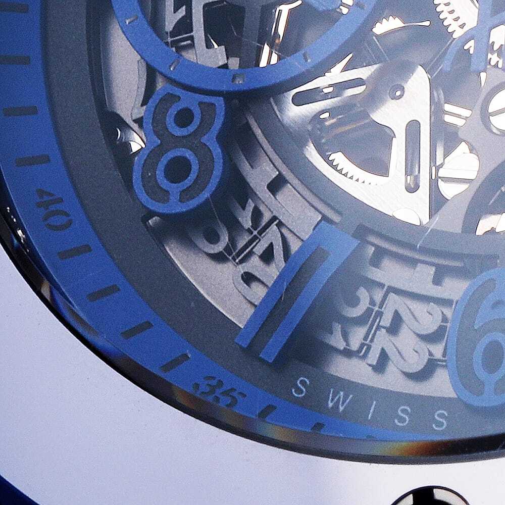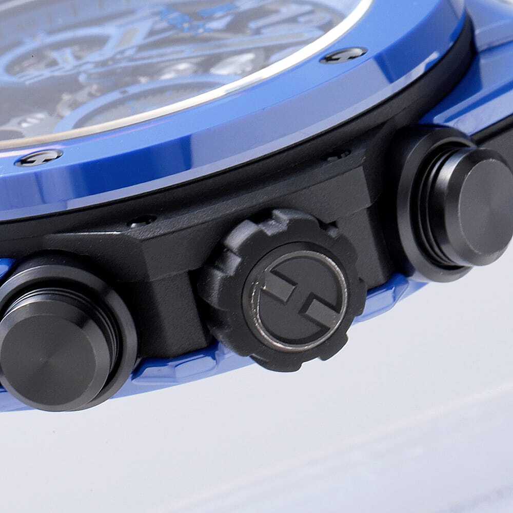 | モデル情報 | 2019年モデル。ウブロが4年の歳月をかけて開発したクロノグラフムーブメントウニコを搭載した「ビッグバン・ウニコ ブルーマジック」を入荷致しました。全体的にスポーティーで美しさも秘めたブルーカラーとなっており、ダイアルがスケルトン仕様、裏蓋もシースルーバック仕様で完全自社製ムーブメント「ウニコ」(Cal.HUB1242)の動きを表裏両面から楽しむことができます。防水10気圧。パワーリザーブ約72時間。 |