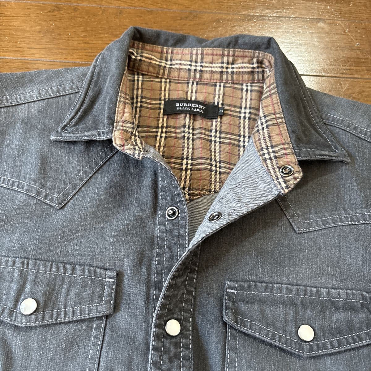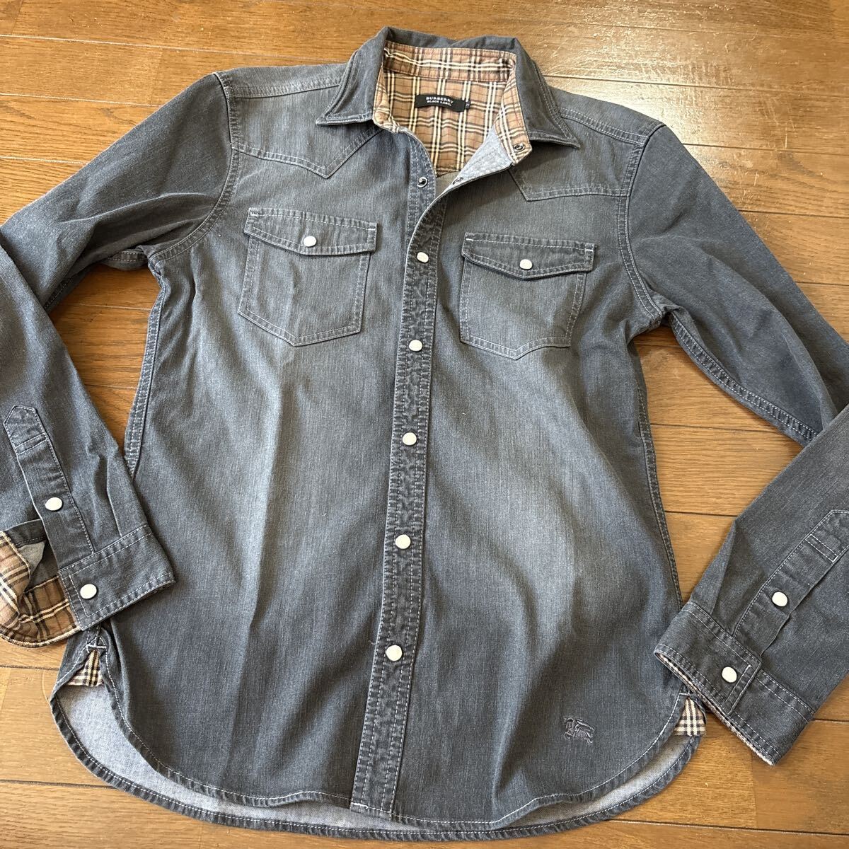 バーバリーブラックレーベル☆デニム風ウエスタン長袖シャツ