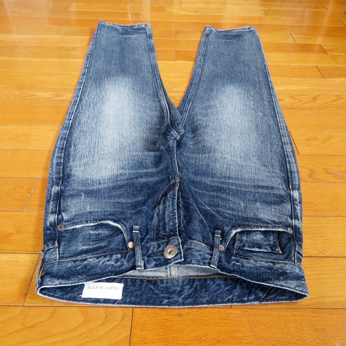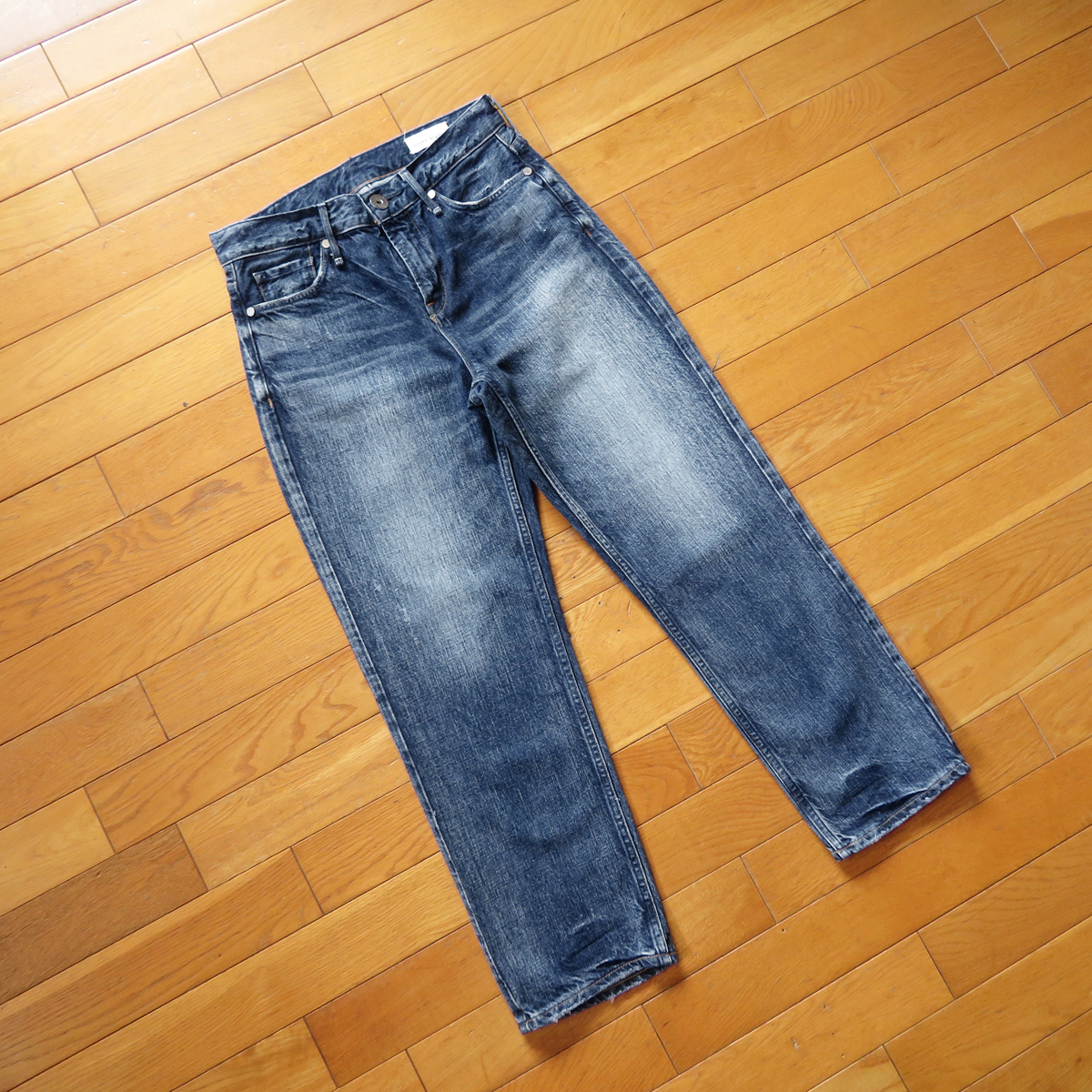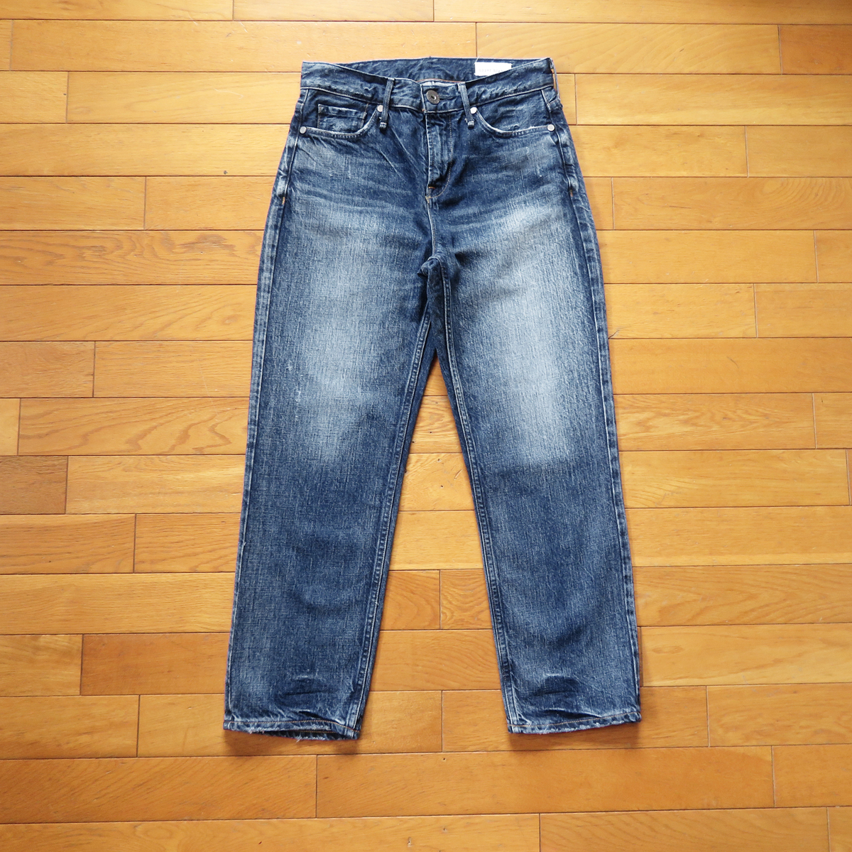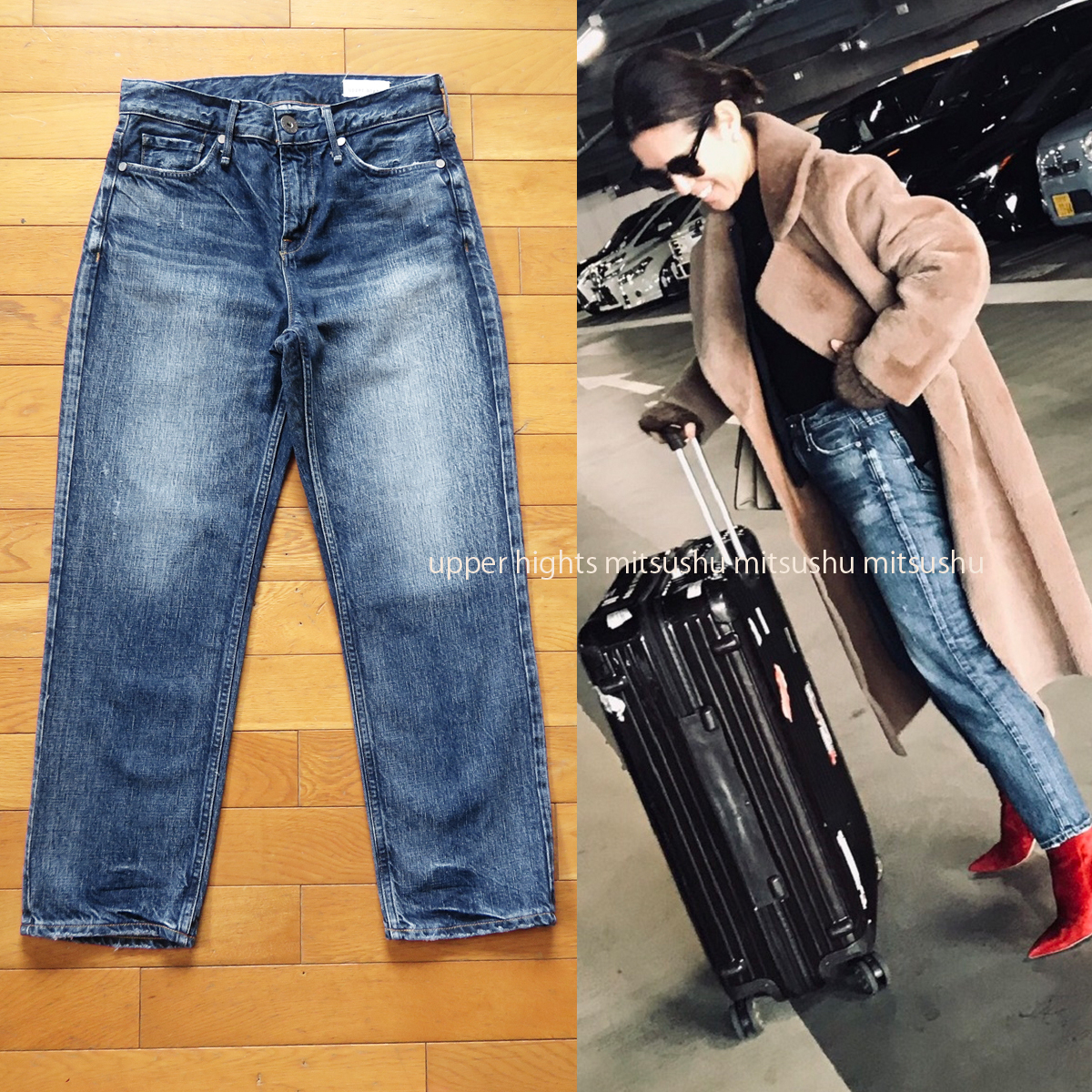 アッパーハイツの人気のシルエットボーイフレンド系「The Her」 2019年モデルになります。 ミッドライズのアンクルシルエット、足のラインはゆったりとしているのですが、ラインがすごく綺麗で とっても美しいシルエットになっています(*^ ^*) ファッション雑誌にも多数掲載されていました。 右側写真は、大草直子さんの着用写真です。シルエットの参考にしてみてください。 元々割りとダメージ加工されているデニムで色落ちや 裾のすれ,ポケットの軽いダメージ、前側の軽いダメージなどは最初からの加工で雰囲気抜群になっています(*^ ^*) お色はインディゴブルーが色落ちしてきたような感じの色合いです。 本当にシルエットもきれいで、使い勝手の良いデニムだと思います。 きれいなうちにお譲りしたいと思っています。いかがでしょうか(^^) 【コンディション】 多少の使用感はありますが、着用回数も少なめで、大きなダメージ、目立つ汚れ等はありません。 まぁまぁきれいかと思います。十分着用していただけます。 ★ポケット周り、裾などのダメージ加工、 少し使い込んだような風合いはもともとの加工です。 ------------------------------------------------------------- 【表記】サイズ 23 【実寸】 平置き ◆ ウエスト 34cm×2(68cm)(平置き後ろ直線測定) ◆ 股上 26cm ◆ 股下 62cm ◆ 裾幅 17cm ◆ わたり幅 25cm(付け根から10cm下を水平に計測) 前後程度になります。※平置き、素人採寸になりますので、多少の誤差はお許し下さい。 ------------------------------------------------------------- 【生産国】 日本製 【材質】 綿100% 【色】 インディゴブルー ミッドブルー 【USED品】 ------------------------------------------------------------- ◆ 他にもいろいろデニムなど出品していますので、よかったら見ていってください。 ◆ もちろん同梱もできますので、お気軽にご質問ください。 ◆ 気持ちの良いお取引を目指していますので、ご質問は事前にお気軽にどうぞ。 終了直前だとお答えできない場合があります。どうぞよろしくお願い致します。 | ||||