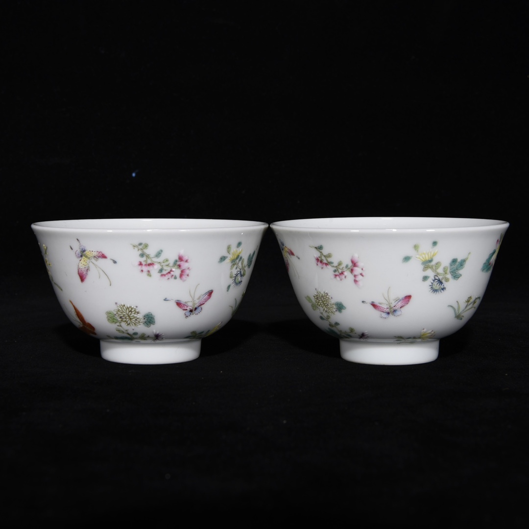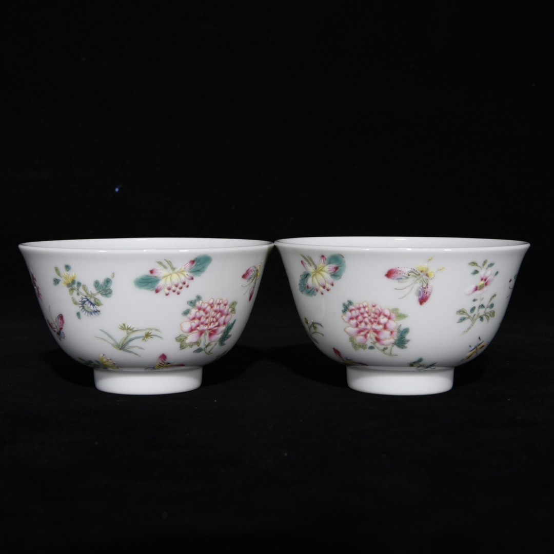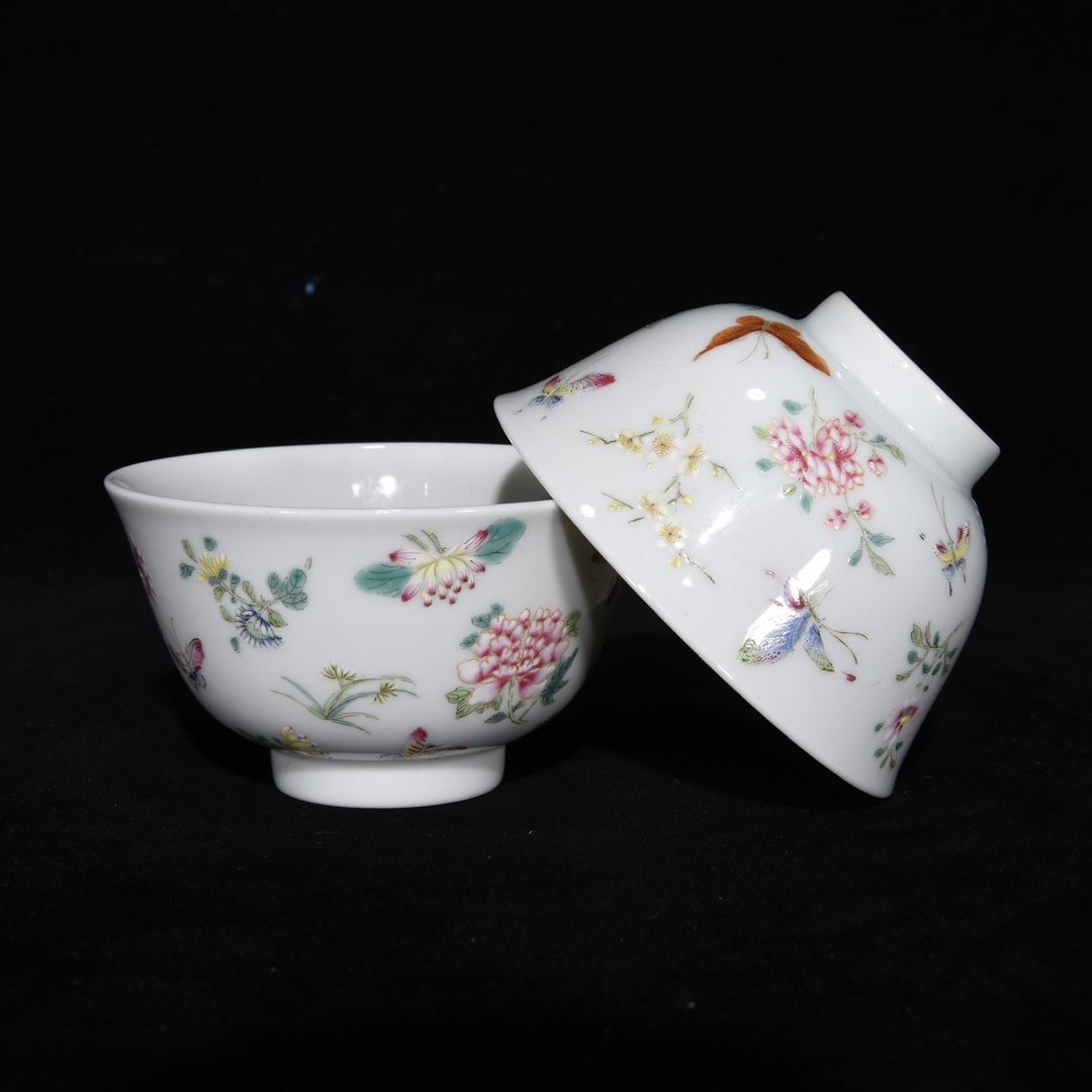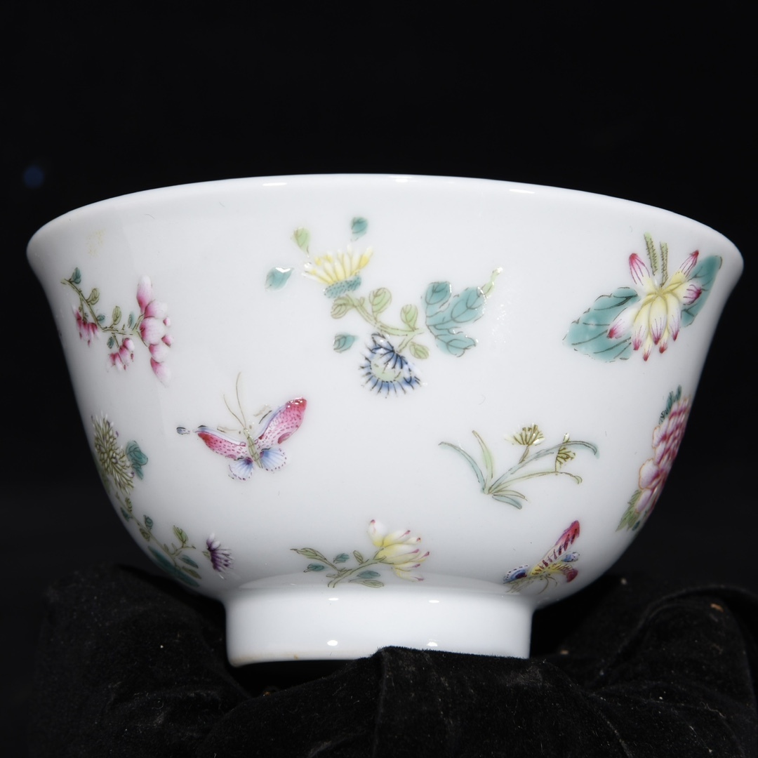 唐物 清 雍正年制 エナメル彩 花蝶紋杯 陶芸 古陶磁器 中国磁器 極細工 中国古玩 骨董品 古美味 D68