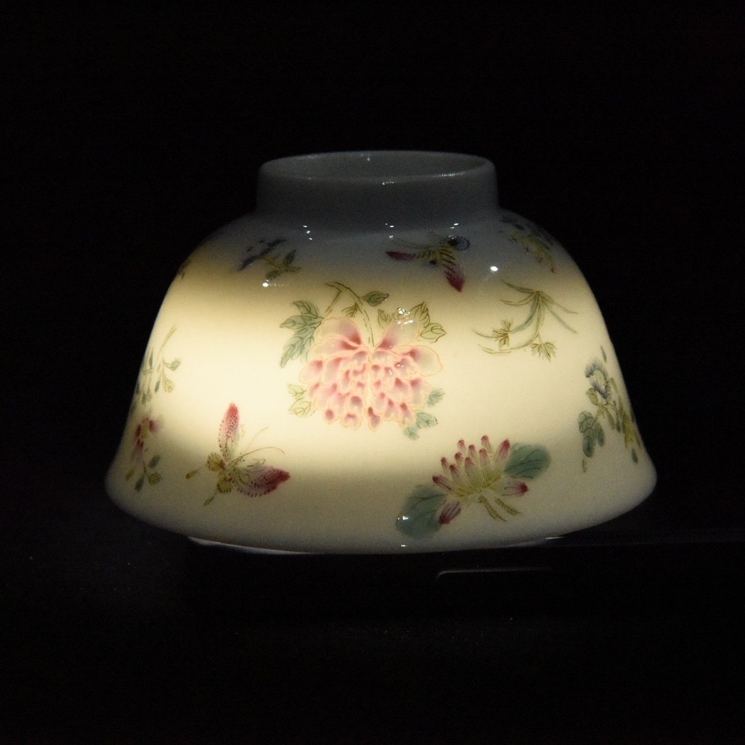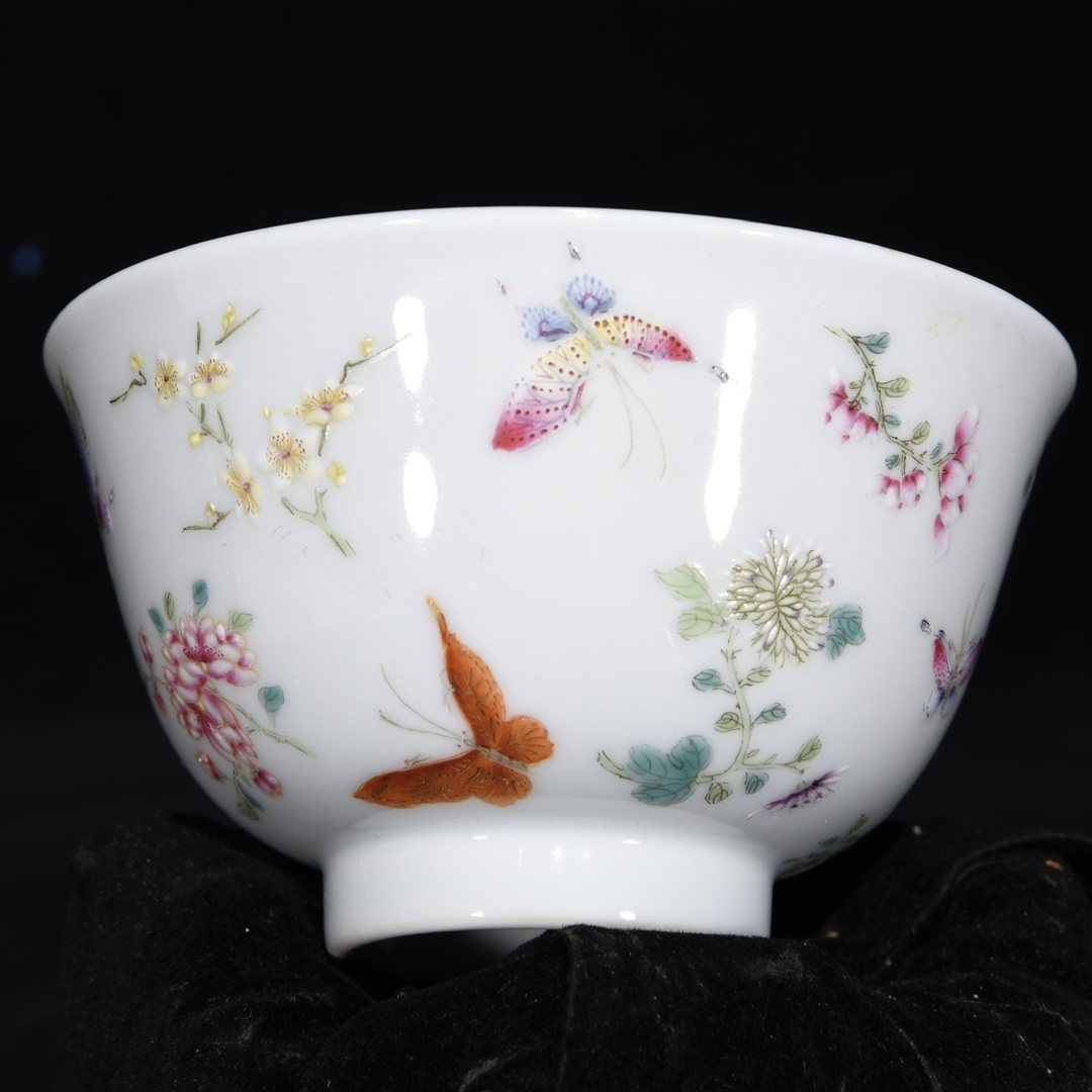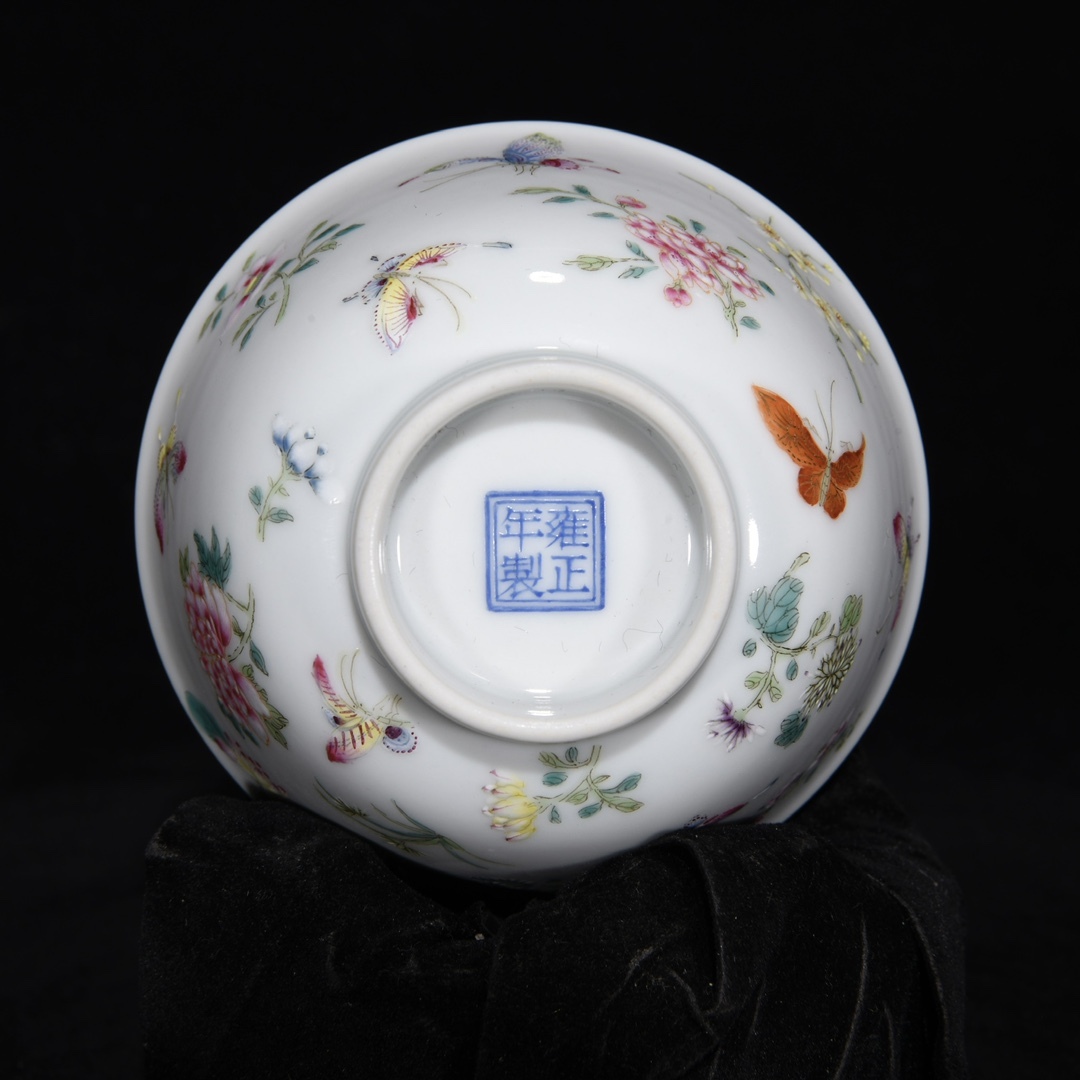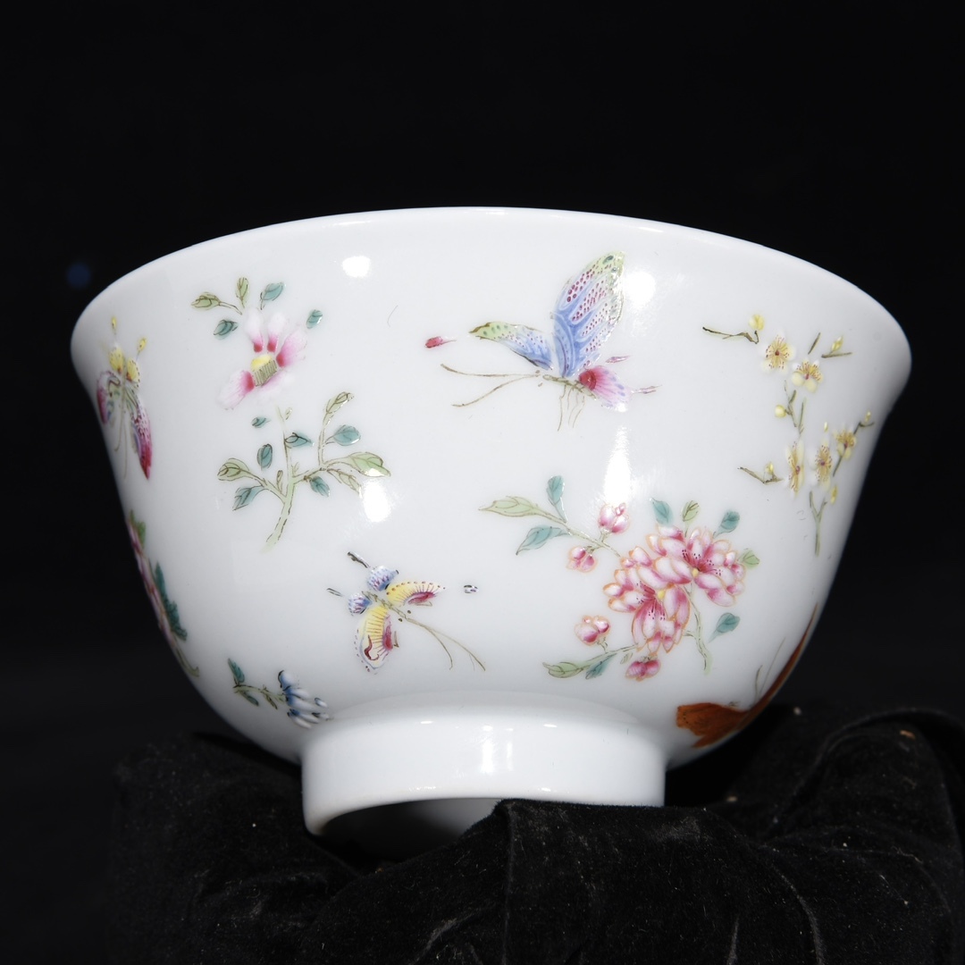 唐物 清 雍正年制 エナメル彩 花蝶紋杯 陶芸 古陶磁器 中国磁器 極細工 中国古玩 骨董品 古美味 D68