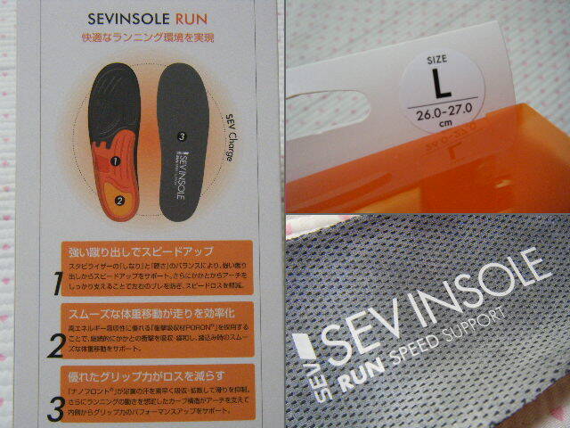 本体は軽量ポリウレタン樹脂素材。       踵の衝撃を吸収・緩和し、踏み込み時のスムーズな体重移動をサポートするランニングシューズ用高機能高性能インソール・中敷き。         スポーツ用インソール、ミディアムアーチタイプ。      @ 快適なランニング環境を実現するアイテム。          モデル名  SEVINSOLE  RUN  SPEED  SUPPORT     カラー グレー色