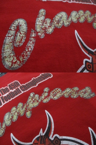 | 商品説明 | ●自己紹介欄ご覧ください。24時間以内に商品送付先のご連絡、3日以内にお支払厳守が取引条件になります。厳守できない方、値下げ、即決を要求する方は即落札者削除とブラックリスト登録します。ご了承ください。 ●サイズ:L ●実寸(素人採寸になりますので、多少の誤差はご了承下さい):着丈(背面襟下~裾):約69cm、身幅(脇下):約52cm、肩幅:約47cm、袖丈(肩先から):約22cm ●カラー:レッド ●素材:コットン ●中古品です。着用に伴う多少の使用感(プリント剥げ等)、薄汚れがございますが、ご使用に問題となる大きなダメージはございません。その他状態等は画像でご確認ください。 ●自己紹介、注意事項をご覧の上、納得し、画像、商品説明で商品を理解できる方のみご検討ください。中古、年代物古着に理解のない方の入札はお断りします。 ●0825 | |