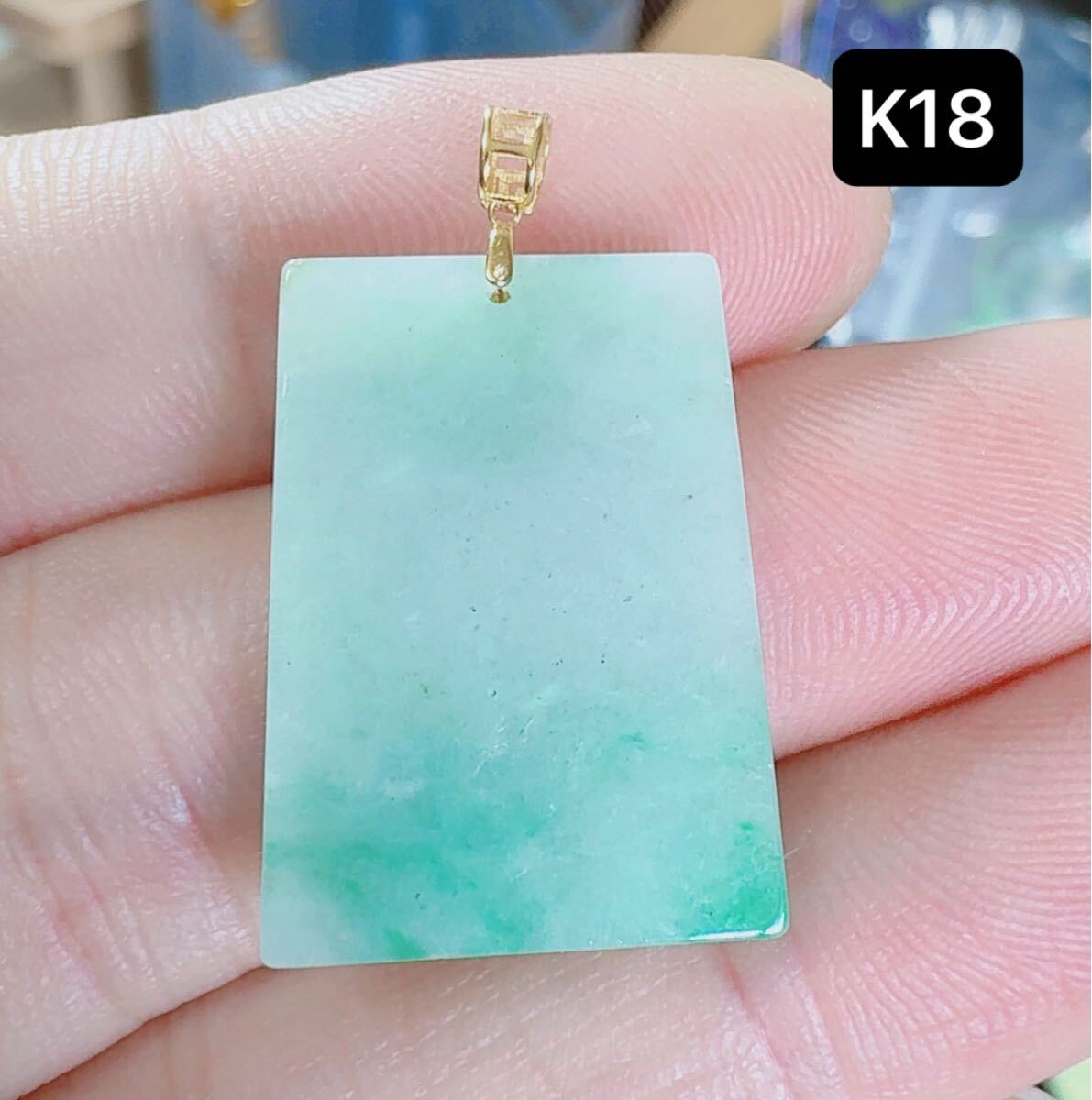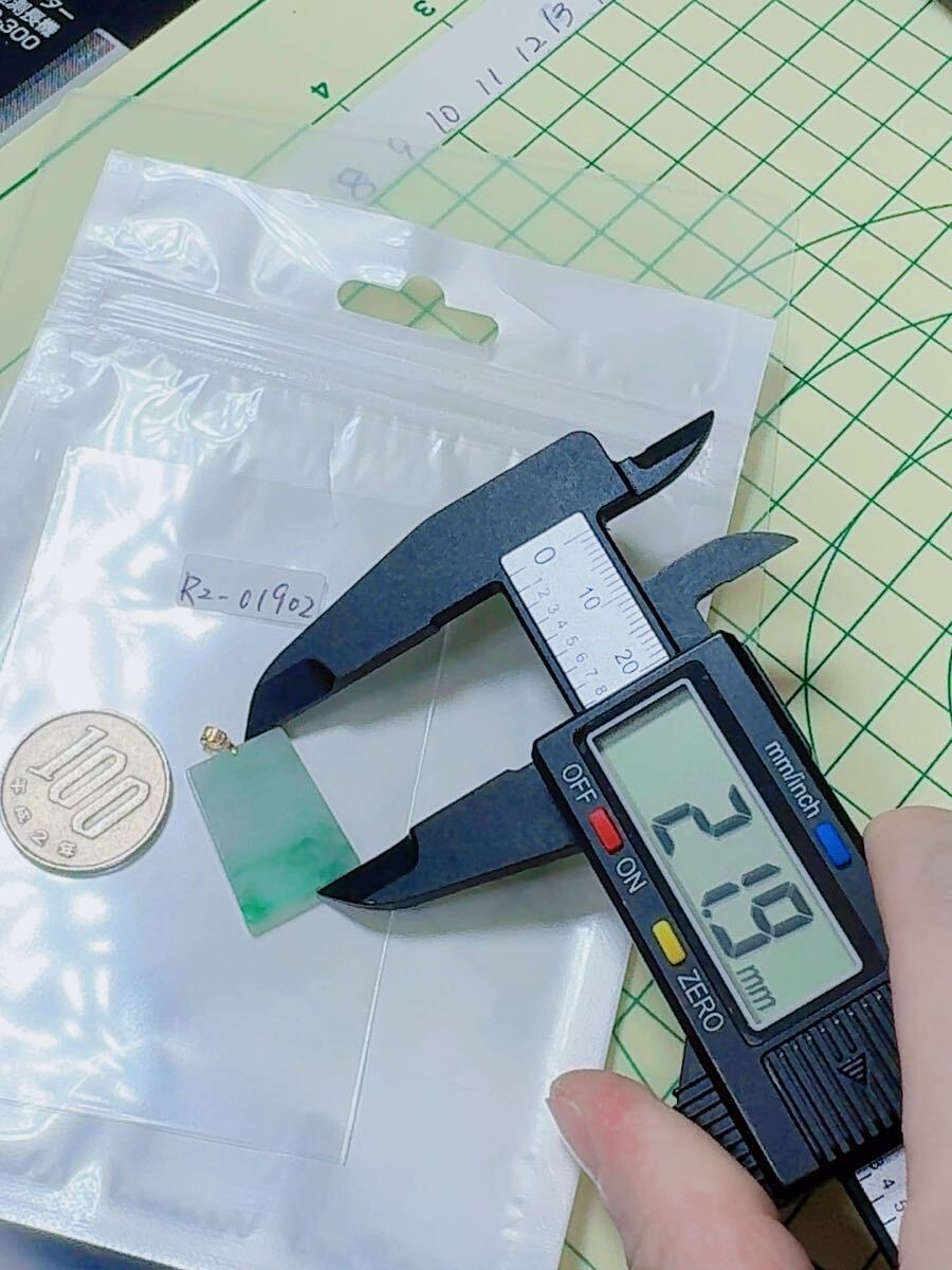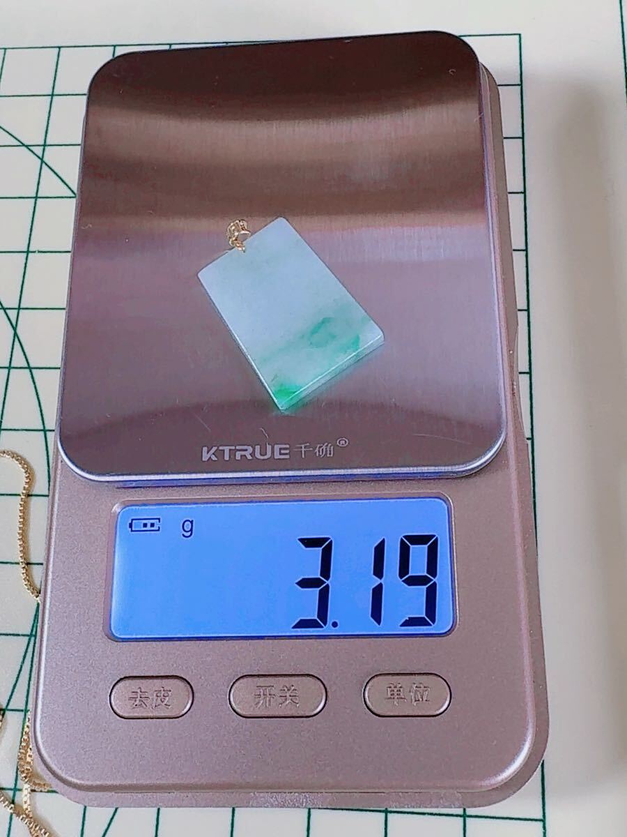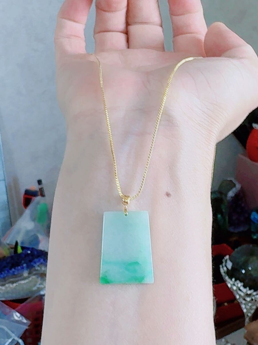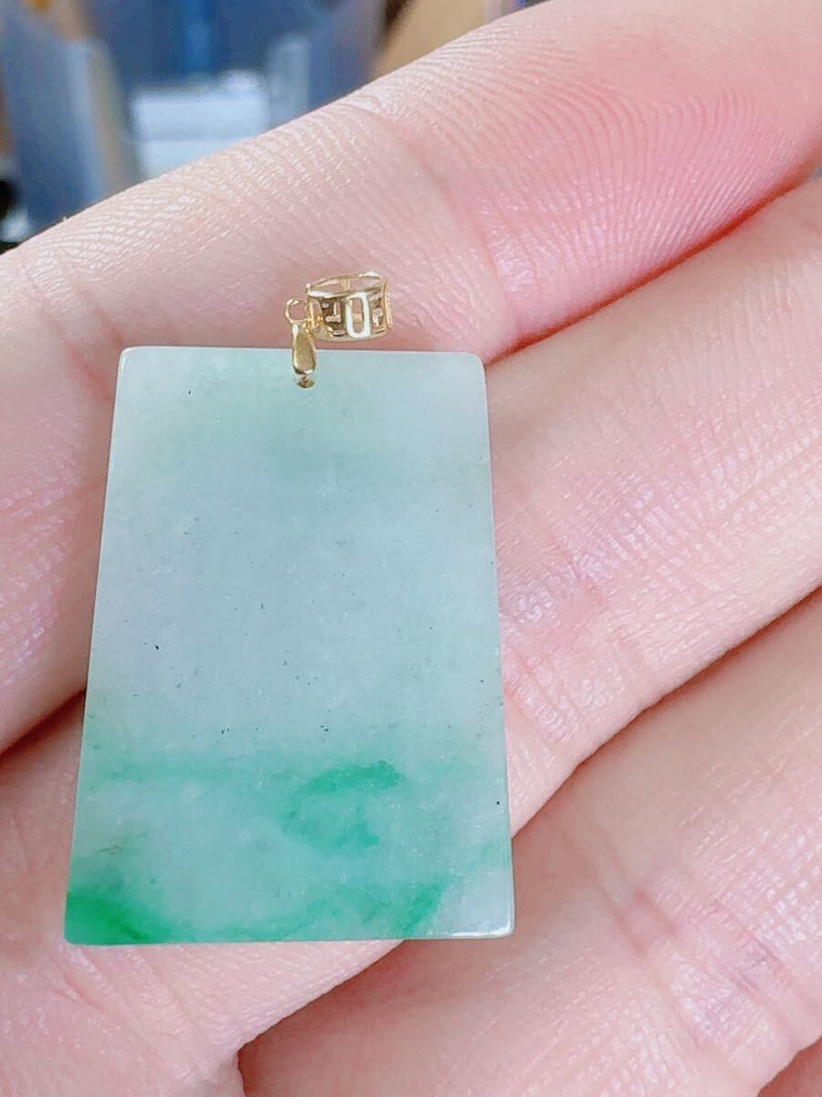 R2-01902天然本翡翠《本物保証》 一点緑翡翠 無事牌ペンダント 金銭運 ミャンマー産 K18 一点物 希少 縁起物 お守り パワーストーン