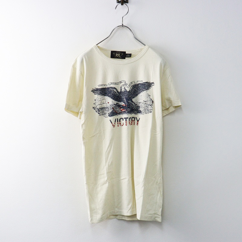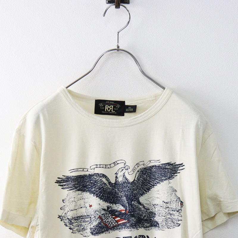 美品 ダブルアールエル ラルフローレン RRL Ralph Lauren イーグルプリントTシャツ XS\アイボリー カットソー メンズ【2400014580044】
