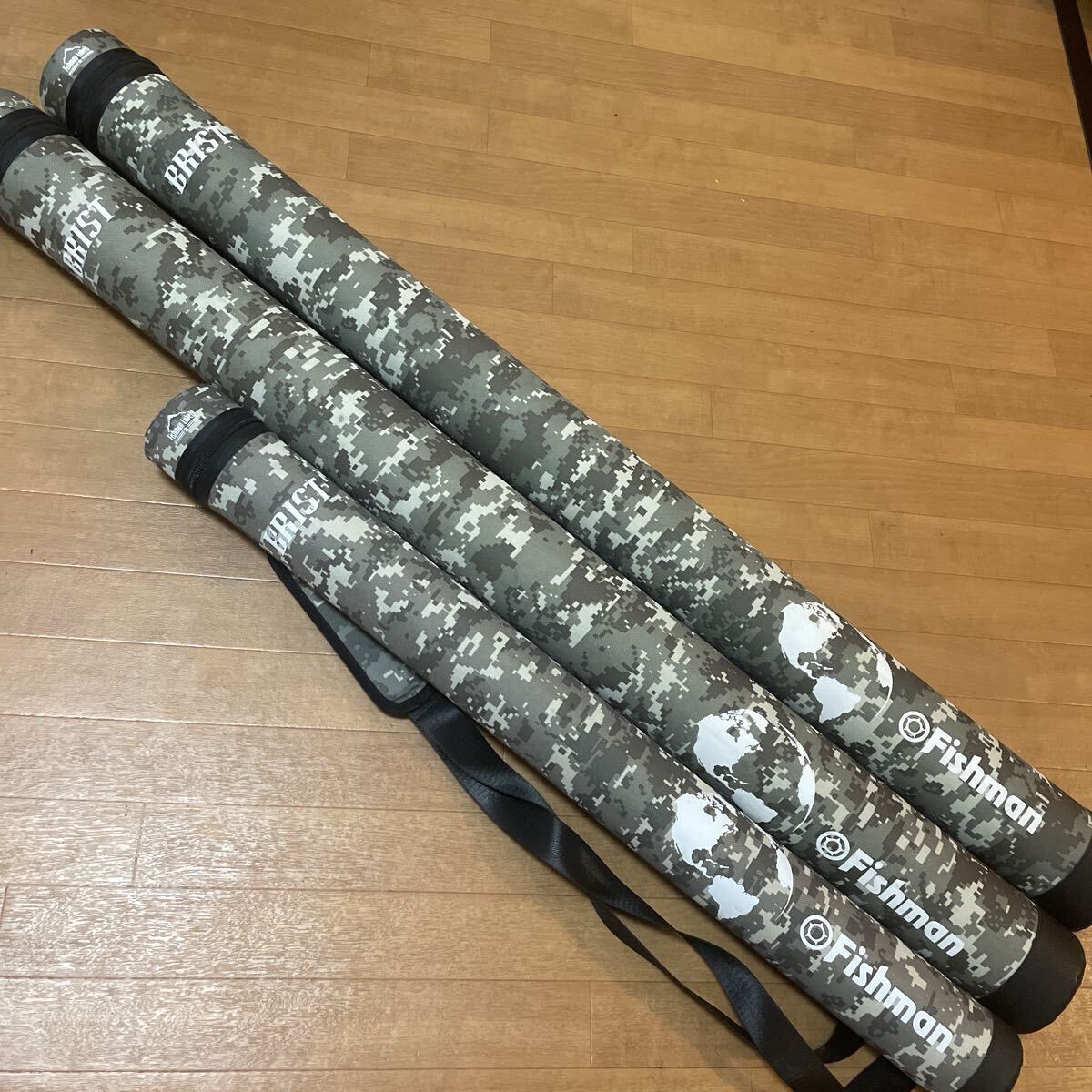 衝撃に強く、ベイトロッドとスピニングロッド両用のカモ柄ロッドケースの3本セット