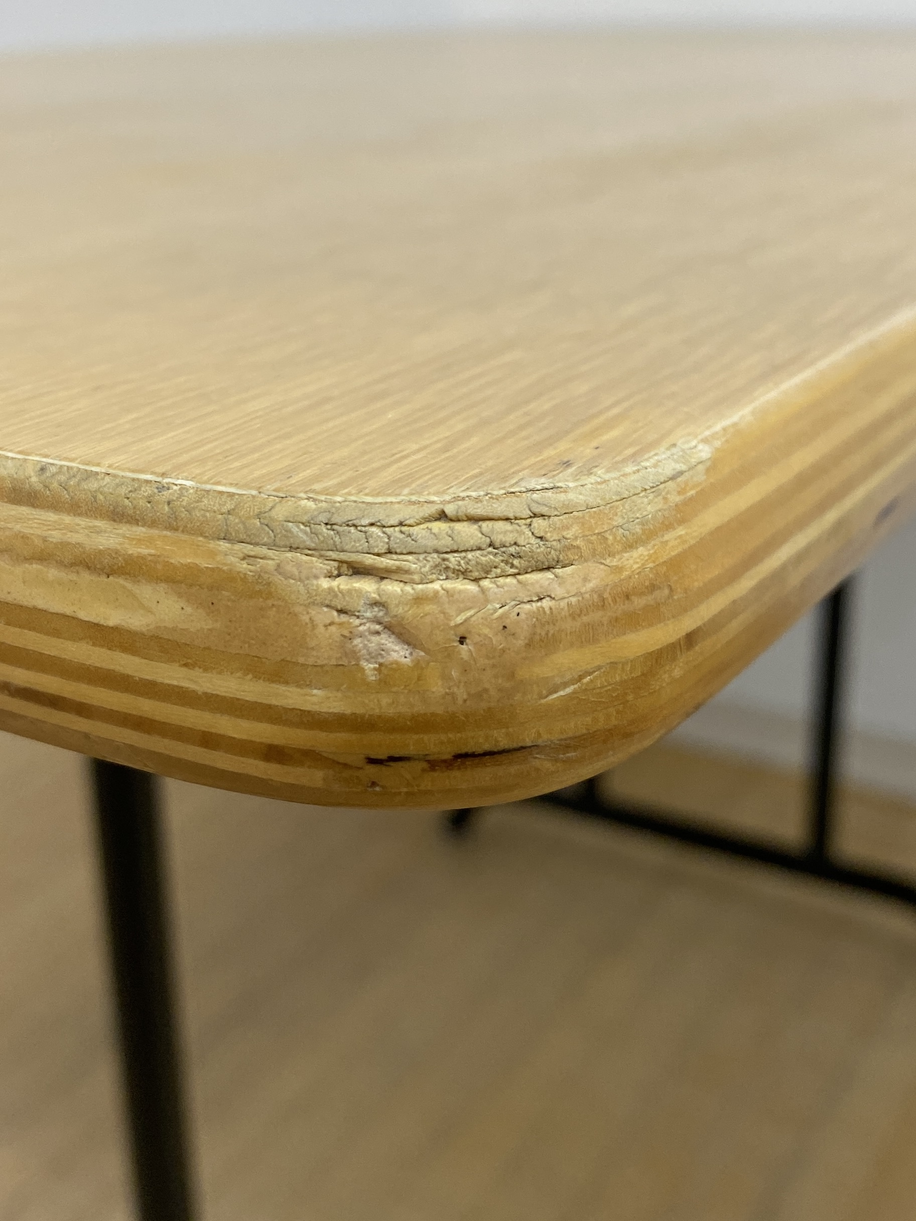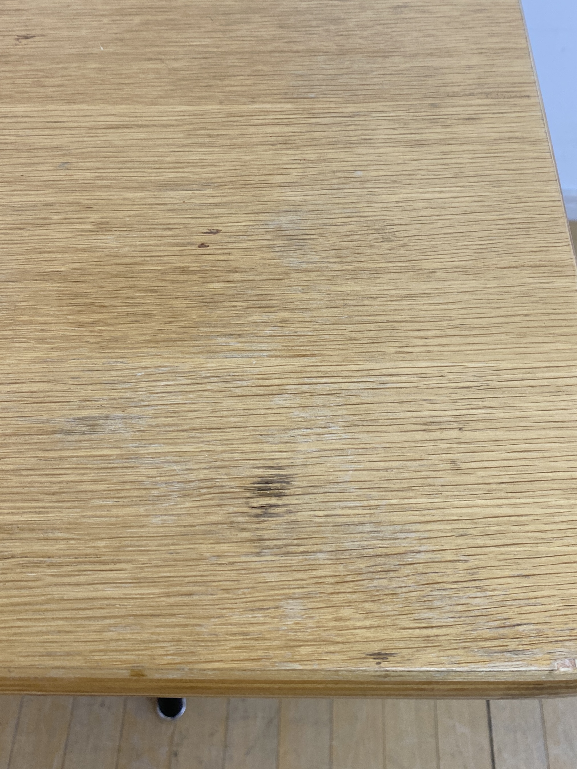 こちらはunico FUNEAT ウニコ ファニート ダイニングテーブルです。 中古品です。 【unico ウニコ 】 60年代の北欧スタイルを基調に、どこか懐かしさや安心感を感じさせてくれる オリジナルデザインの家具を展開する日本のインテリアブランドです。 unico ウニコよりダイニングテーブルのご紹介です。 「FUNEATファニート」は楽しく「FUN、食べる「EAT」という意味合いを込めた人気シリーズです。 高さ67cmと低めの設計で、ダイニングはもちろんリビングなどにもおすすめのテーブルです。 木製天板にスチール脚を合わせたカジュアルなデザインに加え、幅120cmとサイズ感も程良く使い勝手の良いお品となっています。 前オーナー様はワークテーブルとして使用されていたようで、天板下に引出しが増設されています。 今回、同シリーズのソファが2点入荷しています。セットでご購入していただくことで、 人数やスペースに合わせたレイアウトをお楽しみいただけます。 順次出品予定ですので、こちらもぜひ一緒にご検討ください(’25/9/1現在)。 【コンディションについて】 全体にキズや変色、塗装落ちなどがあります。天板下には粘着テープの跡が残っています。 使用感はありますが、しっかりした作りでグラつきなど無く長くお使いいただけます。 ダイニングテーブルとしてだけでなく、増設された引き出しを活用してワークテーブルにもおすすめの一品です。 インテリアに馴染むシンプルなデザインで、長くご愛用いただける家具となっています。 他詳細については下記画像も併せてご参照ください。 ![]() 【天板角】 ![]() 【天板裏】 ![]() ![]() ![]() この機会に是非ご検討ください。皆様のご入札をお待ちしております! 再良市場の他のお品物はこちらから!