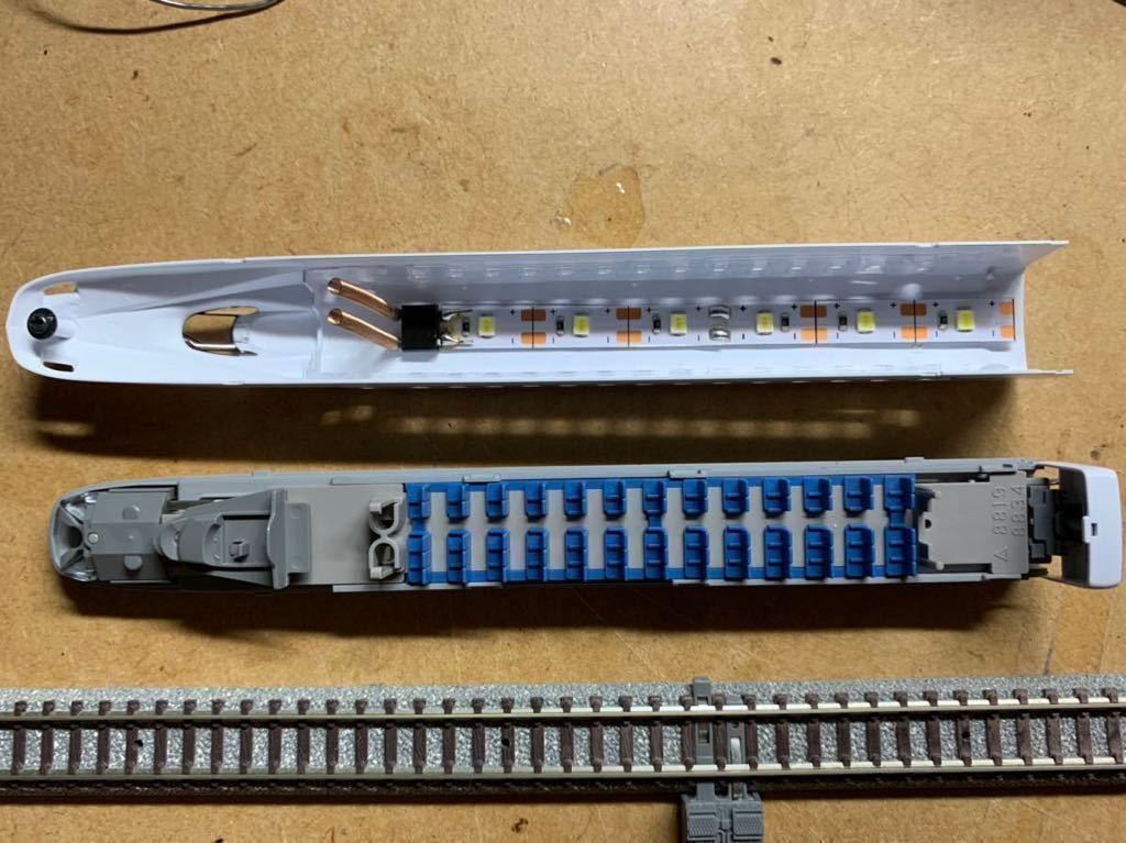 5.点灯テスト(異常なければ完成) 動力車両取り付けの際はスプリングを適宜ハサミで切ってご使用ください。 説明書はありません。