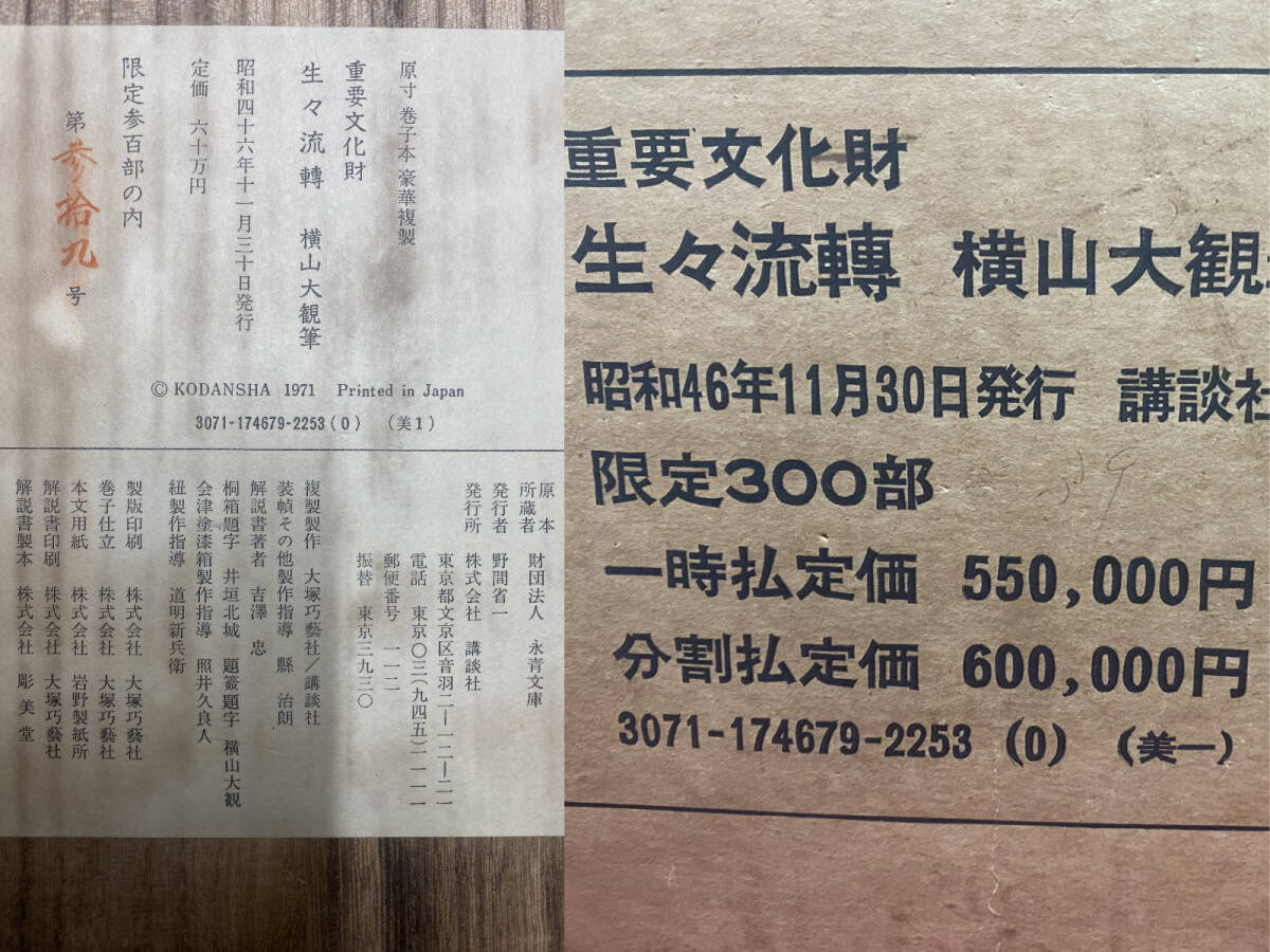 『複製』横山大観『生々流轉』原寸 二重箱 巻物 限定39/300部 定価55万円 講談社重要文化財 昭和46年11月30日発行 掛軸 璟蔵25080301