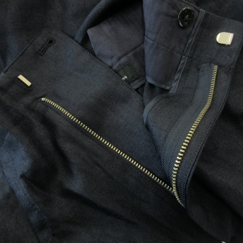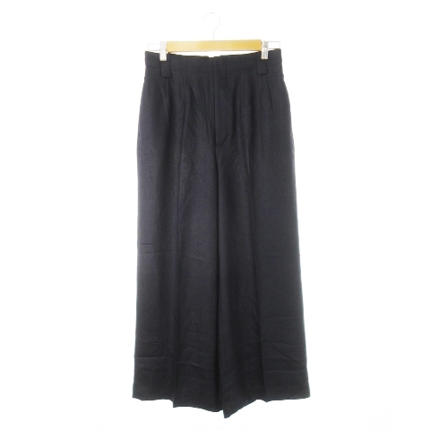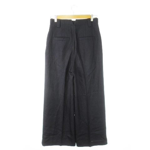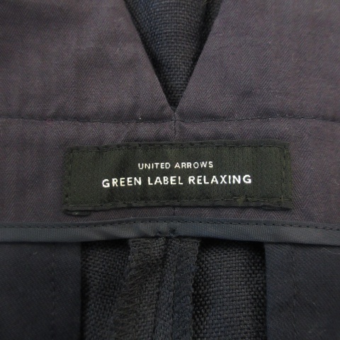 グリーンレーベルリラクシング ユナイテッドアローズ green label relaxing リネンタッチ ワイドパンツ ダブルタック シャリ感 40 L 紺