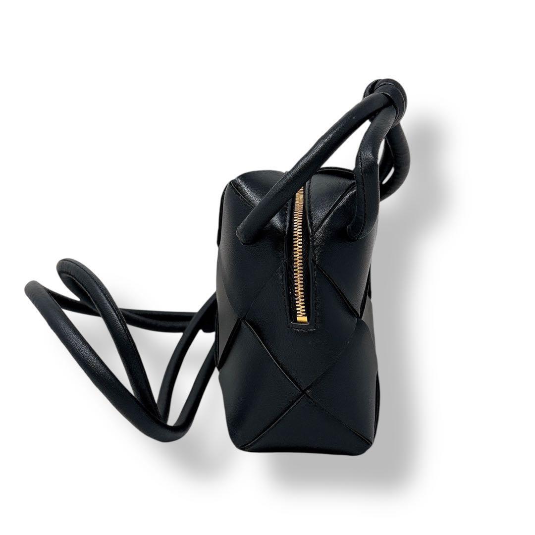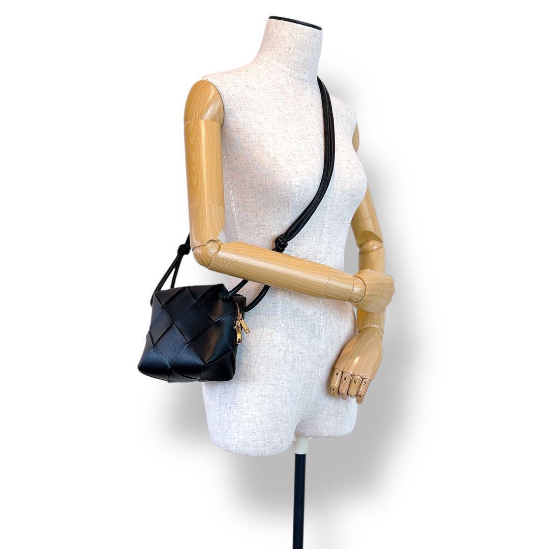 商品名:ショルダーバッグ ミニ カセット カメラバッグ 701915 マキシイントレチャート 黒 ブラック レザー レディース