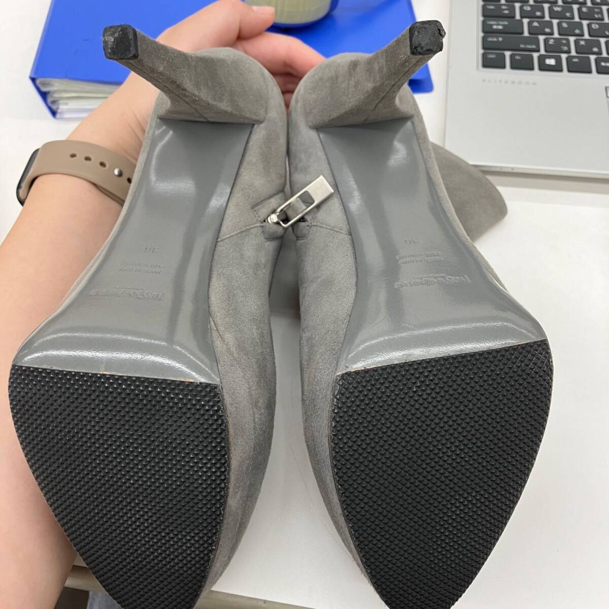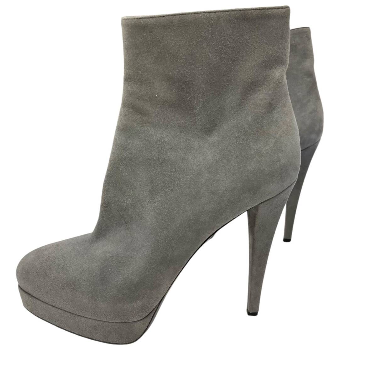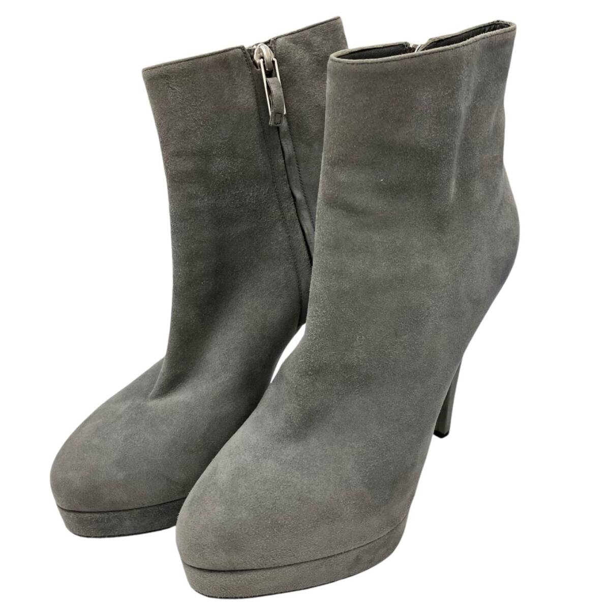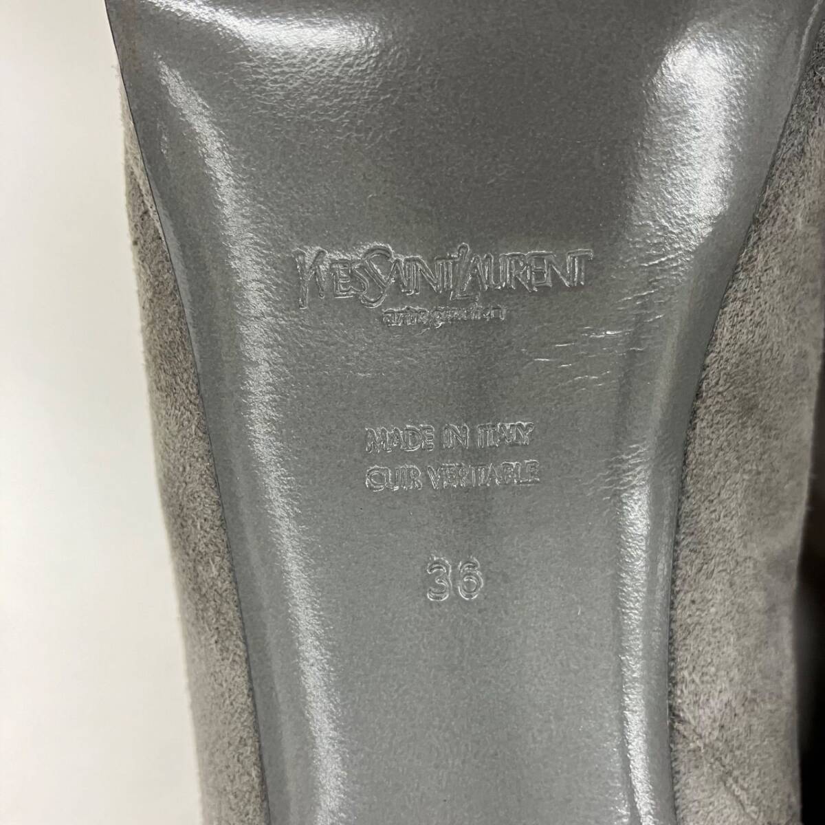 186005 現状品 Yves Saint Laurent イヴサンローラン ショートブーツ 36 グレー ピンヒール 本革 レディース