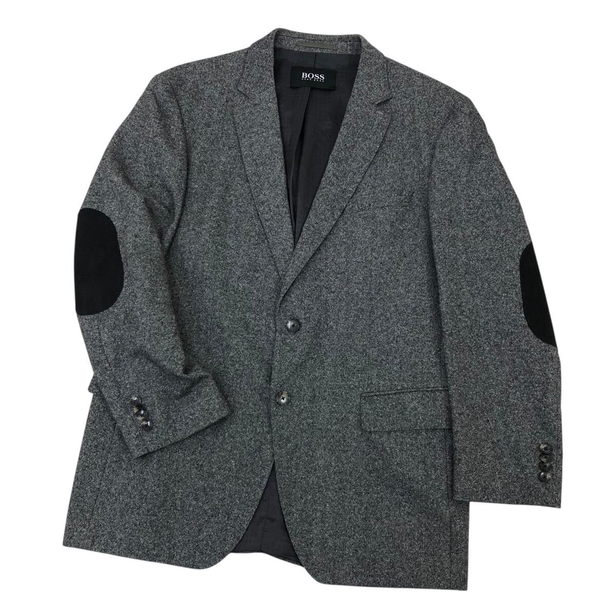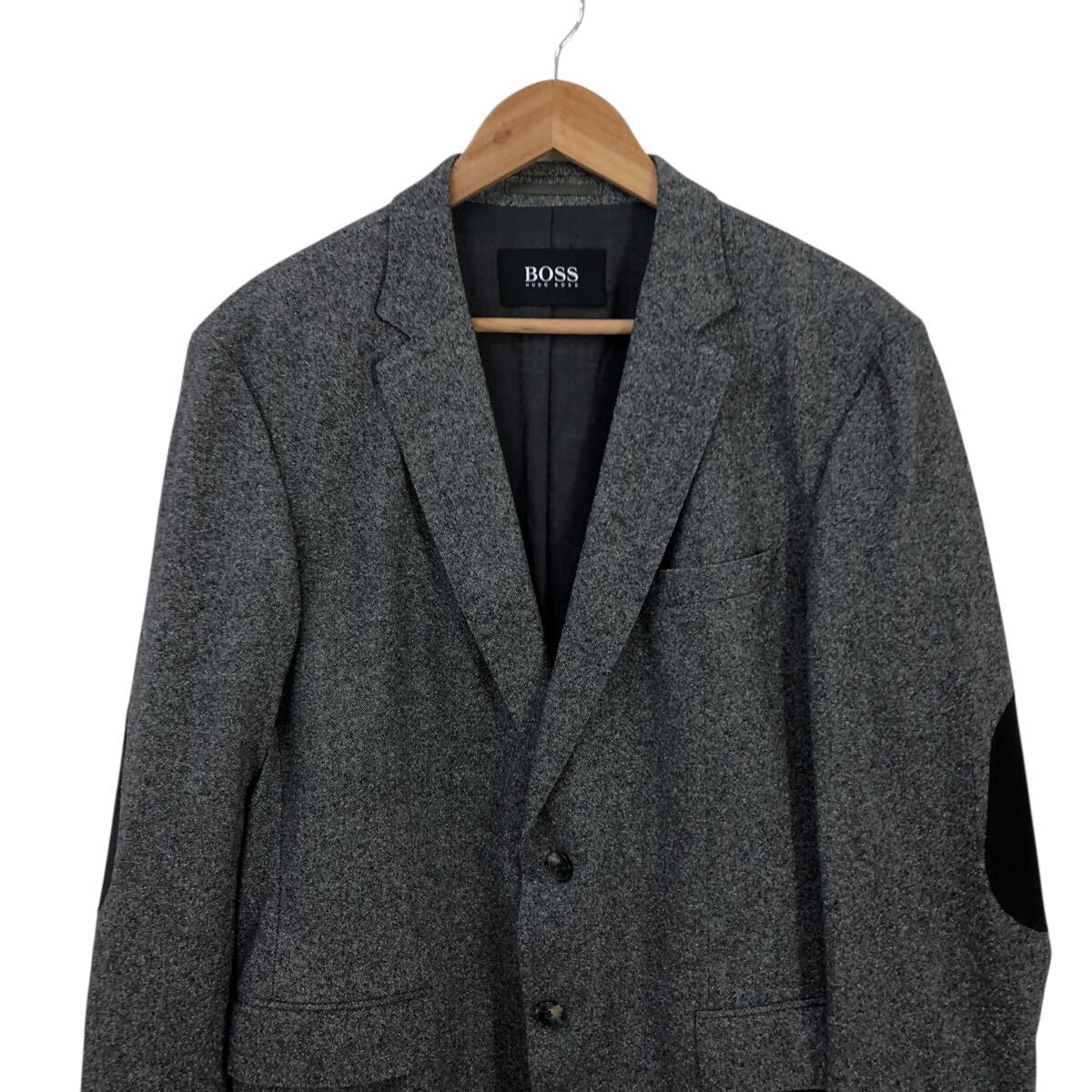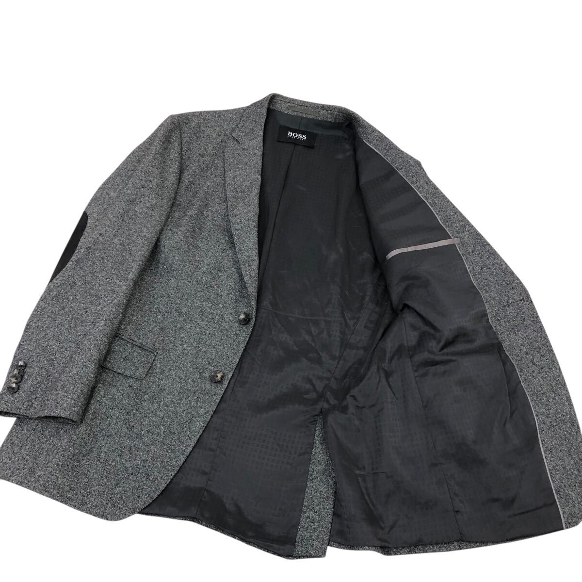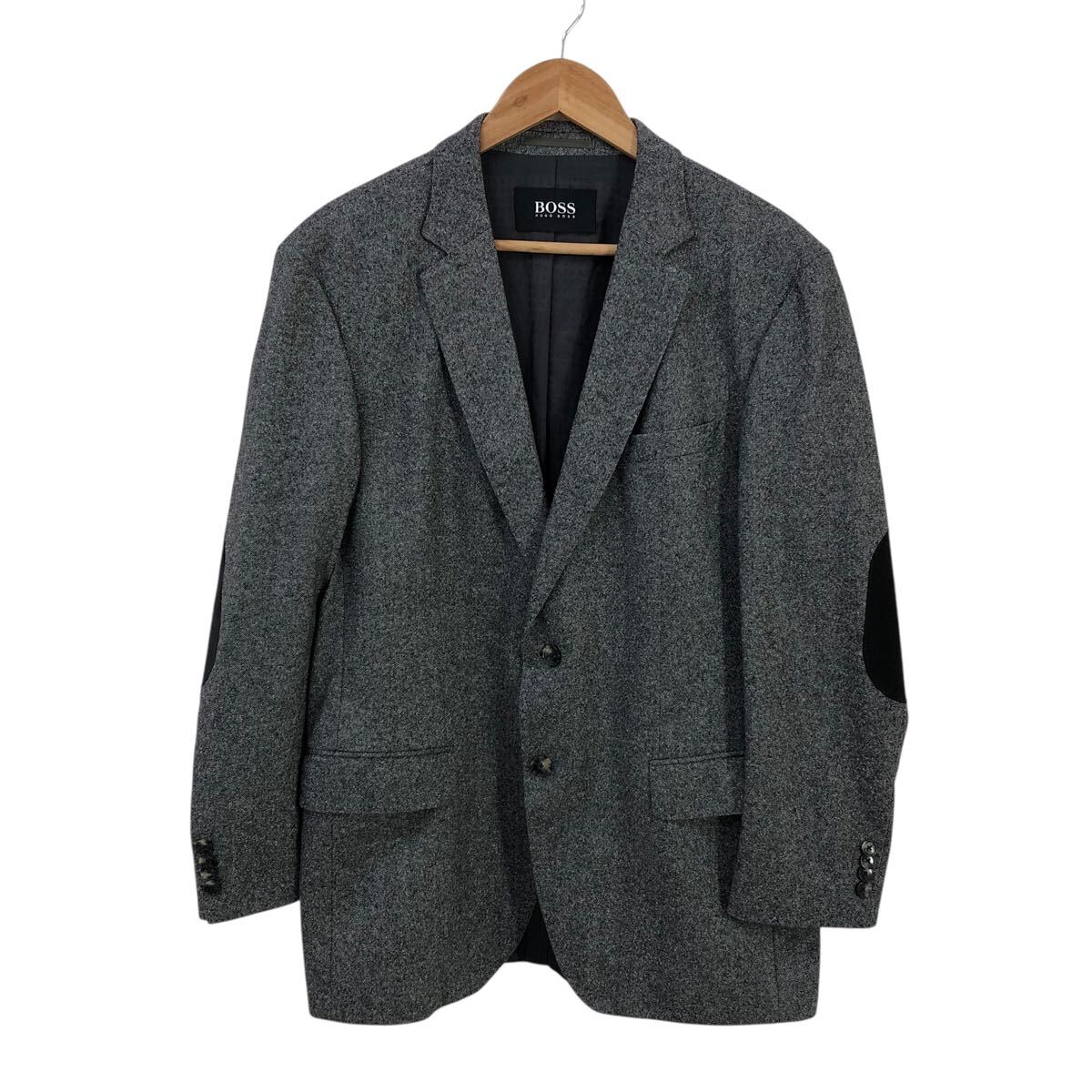 8H823-55 HUGO BOSS ヒューゴボス エルボーパッチ デザイン 長袖 テーラードジャケット ジャケット 上着 グレー系 大きいサイズ 52 良品