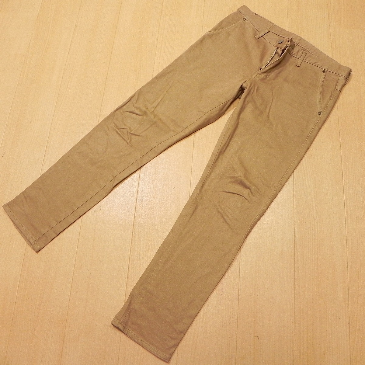 ●あくまでも古着のため、ノークレームノーリターンでお願いいたします。使用感はございますが、とくにダメージございません。素材はストレッチ生地です。色は濃いベージュ系です。 裾はオリジナルのチェーンステッチです。