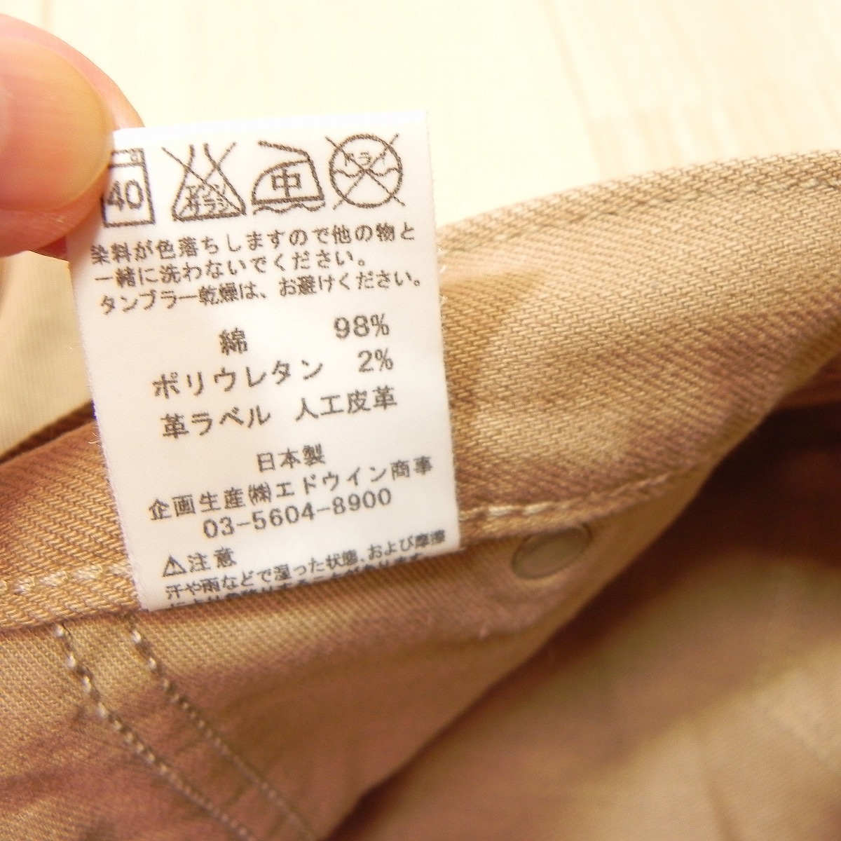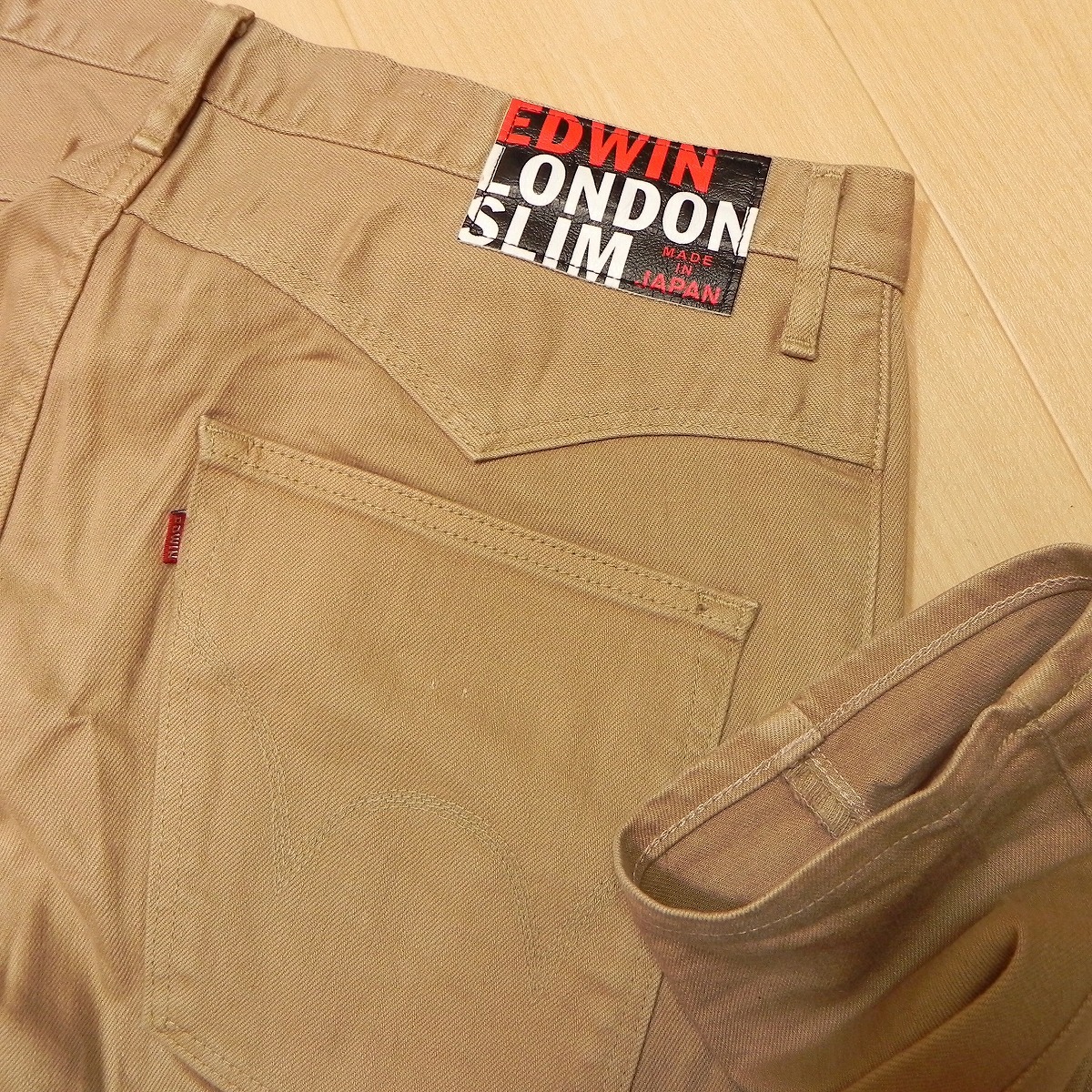 )887★ 日本製 EDWIN エドウィン 416XV LONDON SLIM ストレッチ テーパード コットンパンツ w34 ベージュ系 古着 即決 ★