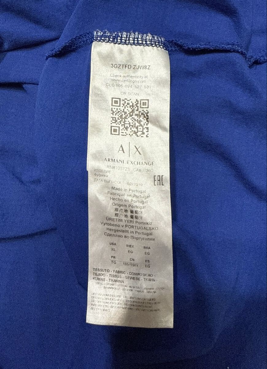 鮮やかなブルーのARMANI EXCHANGE Tシャツ、カジュアルなスタイルに最適。