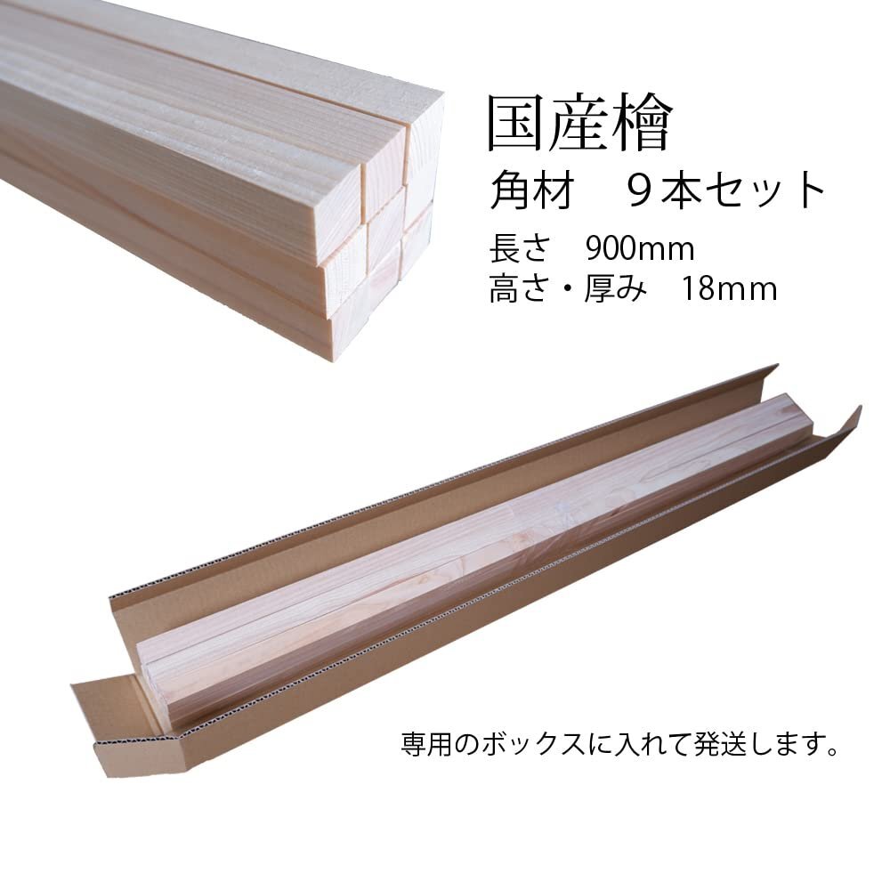 【SALE期間中】 桧 900mm DIY 木材 檜(ひのき)角材 18mm 18mm x 工作 9本セット Nill(ニル)
