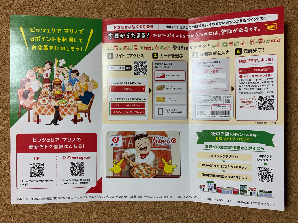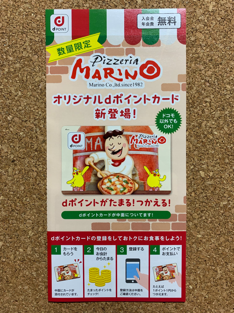 【ポイントカード 22】dポイント MARINO マリノ PizzeriaMARINO ピッツェリアマリノ 未使用 未登録