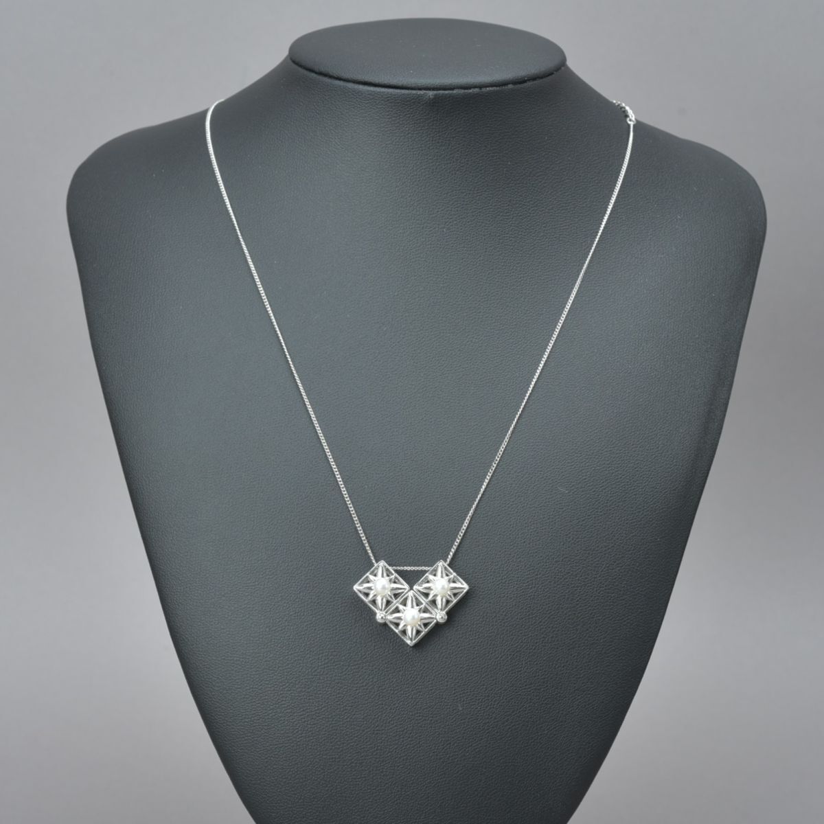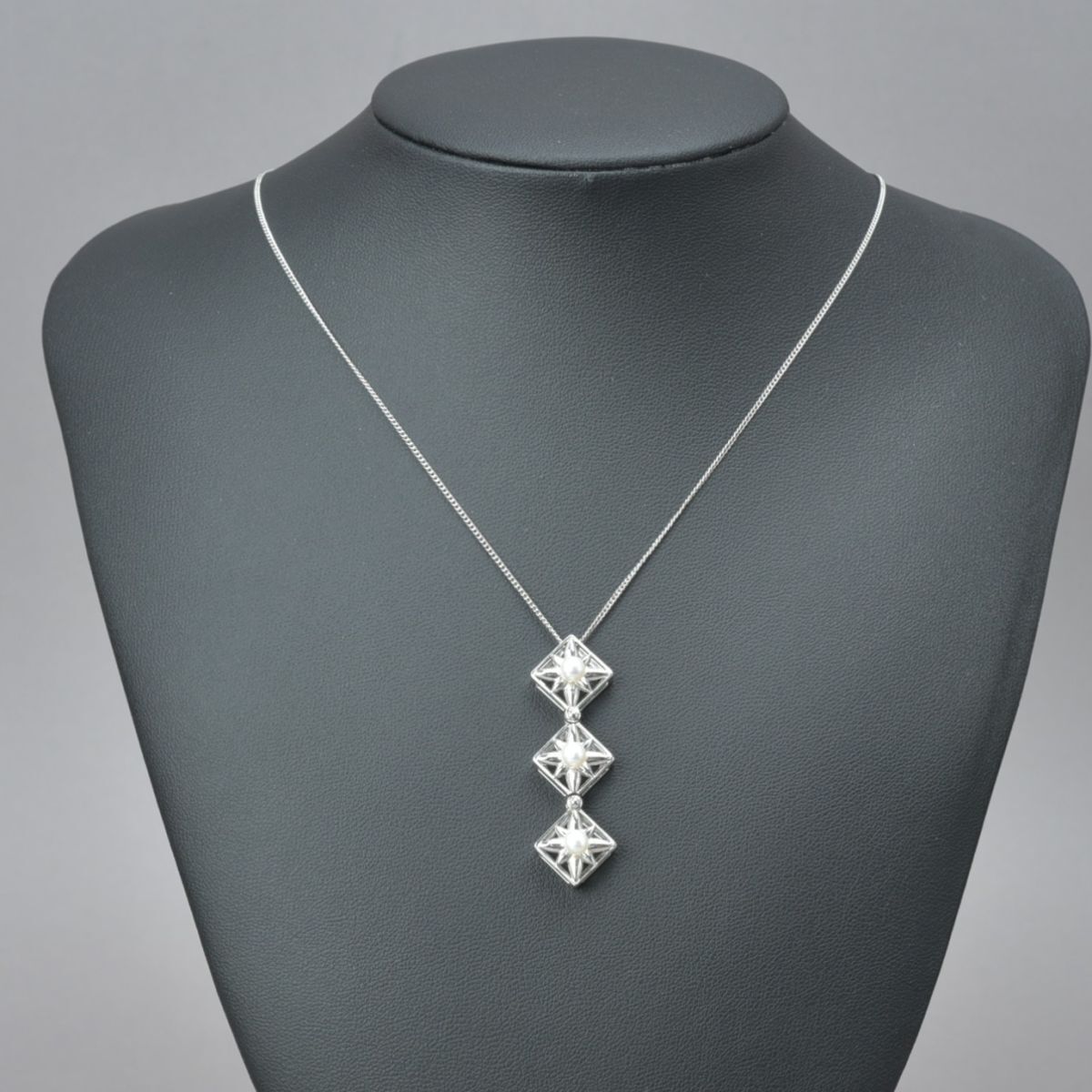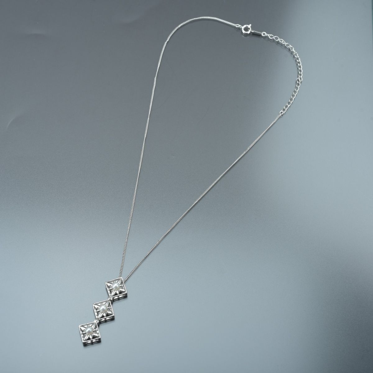 美品 田崎真珠 2Way ネックレス 3連/ハート パール幅4.0mm 重さ6.1g SV パール