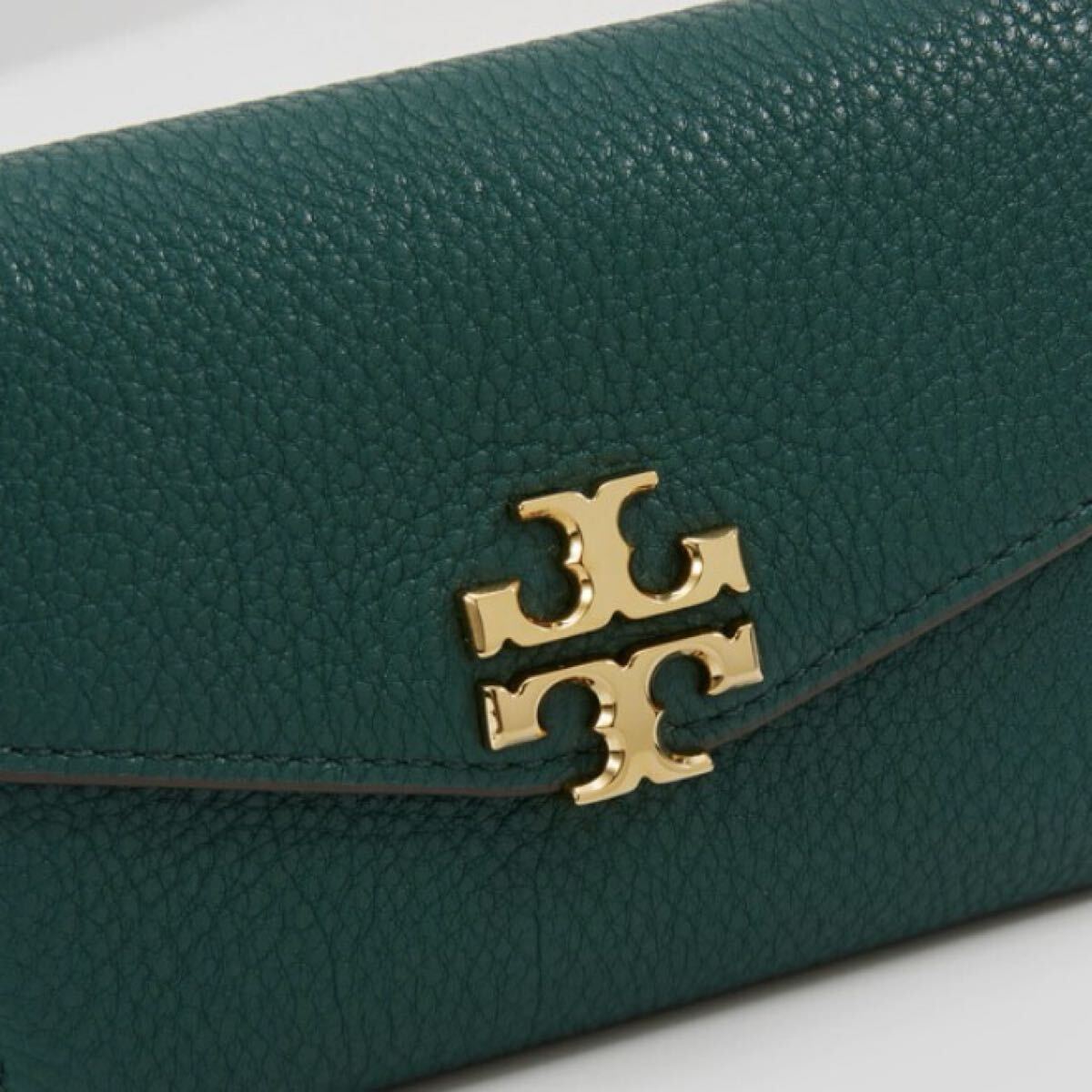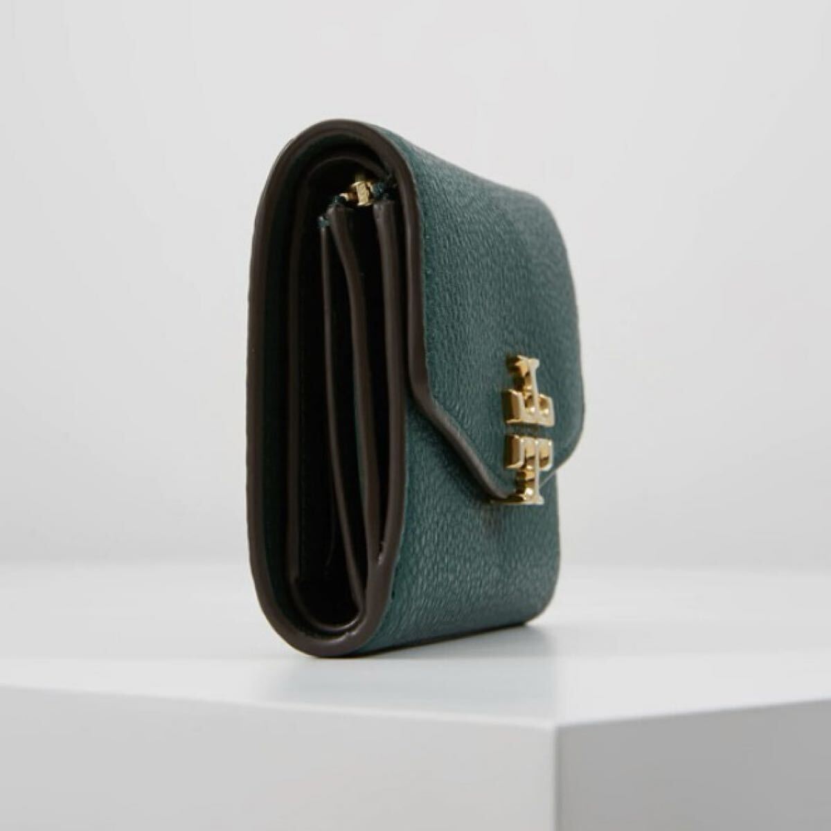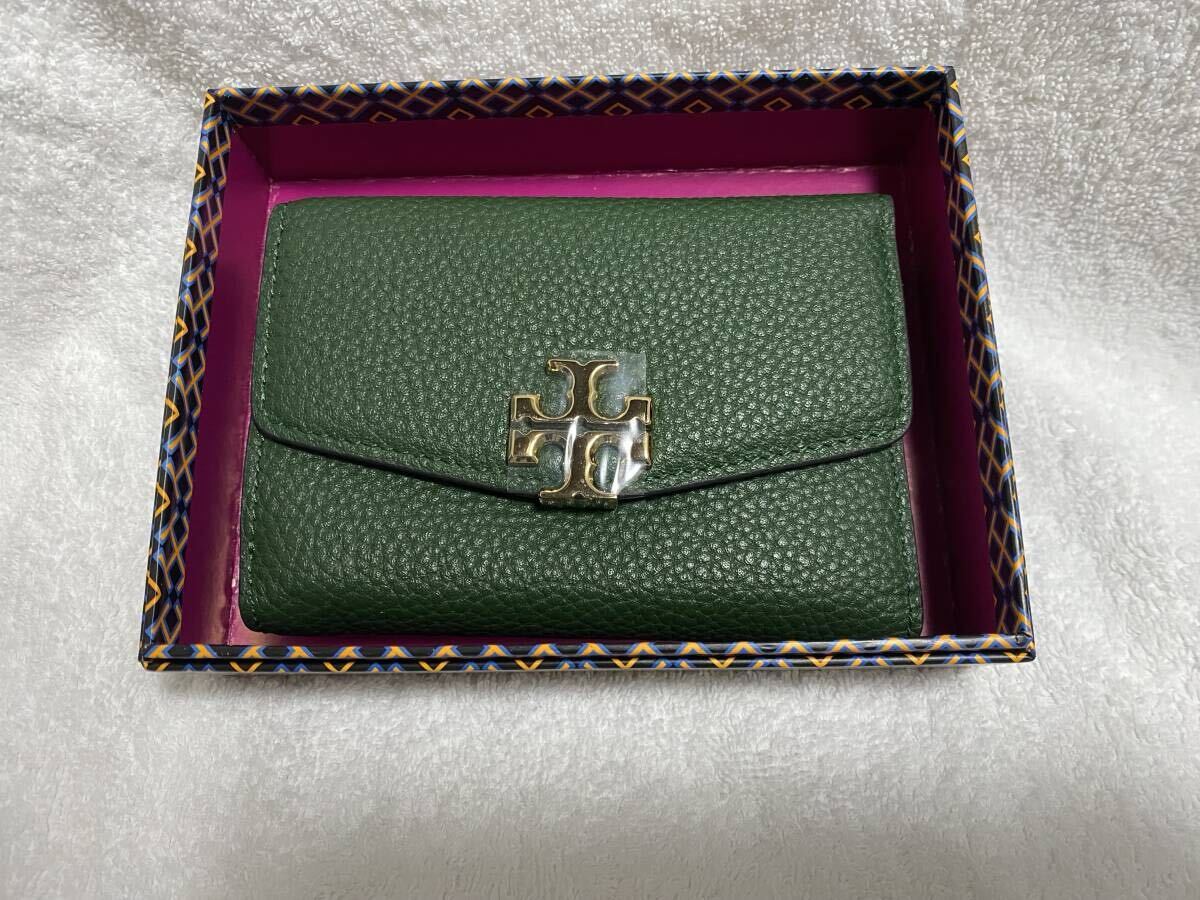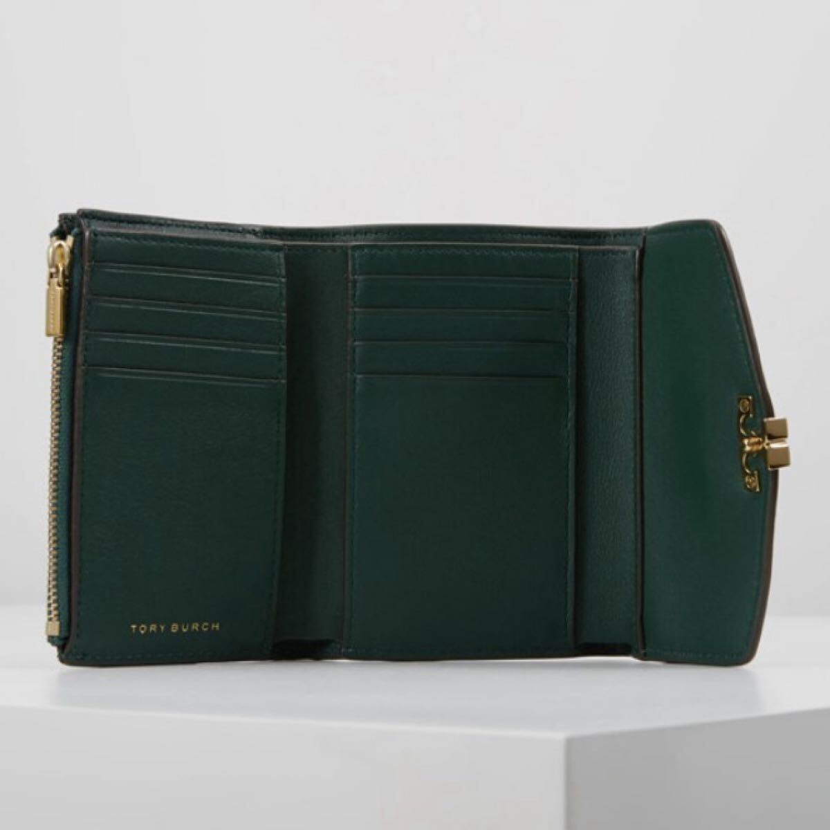 トリーバーチ 新品★箱付★発送無料 三つ折り コンパクト ミニウオレット マラカイト Kira Mixed Materials Medium Flap Wallet