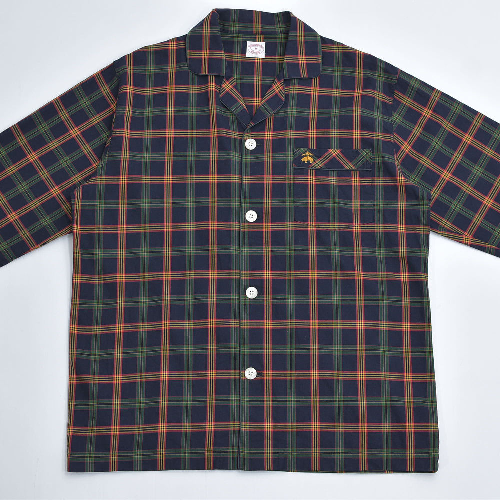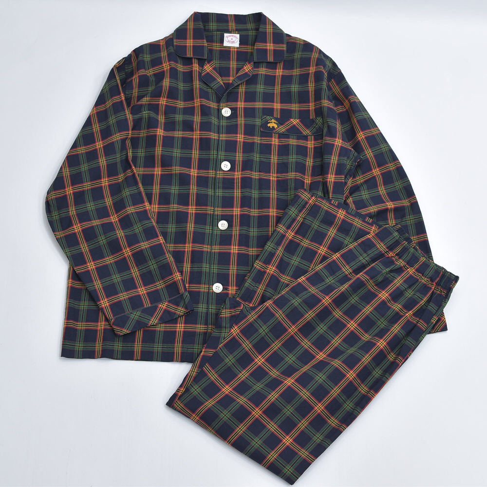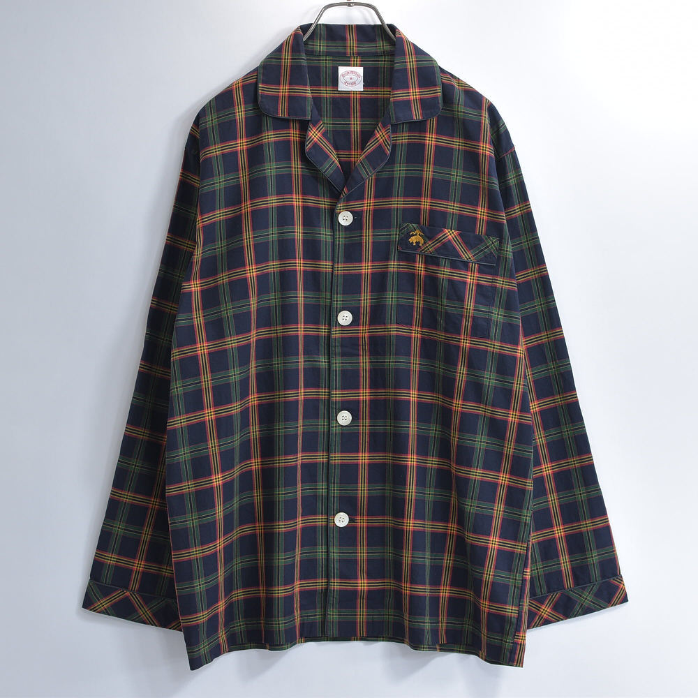 00s Brooks Brothers ブルックスブラザーズ 刺繍ロゴ タータンチェック パジャマシャツ セットアップ オープンカラー ルームウェア ネイビー ヴィンテージ ビンテージ アメリカ古着 メンズ Mサイズ