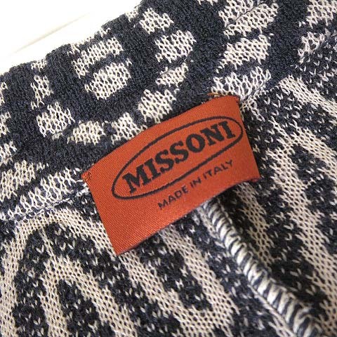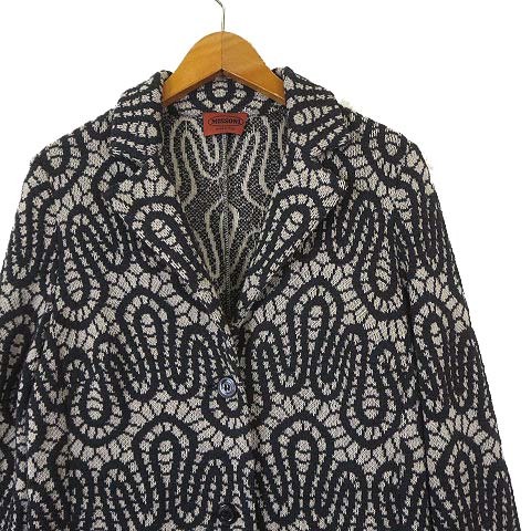 ミッソーニ MISSONI イタリア製 ジャケット カーディガン ニット 総柄 ウール 長袖 L 42 黒 ブラック ベージュ 国内正規品 レディース